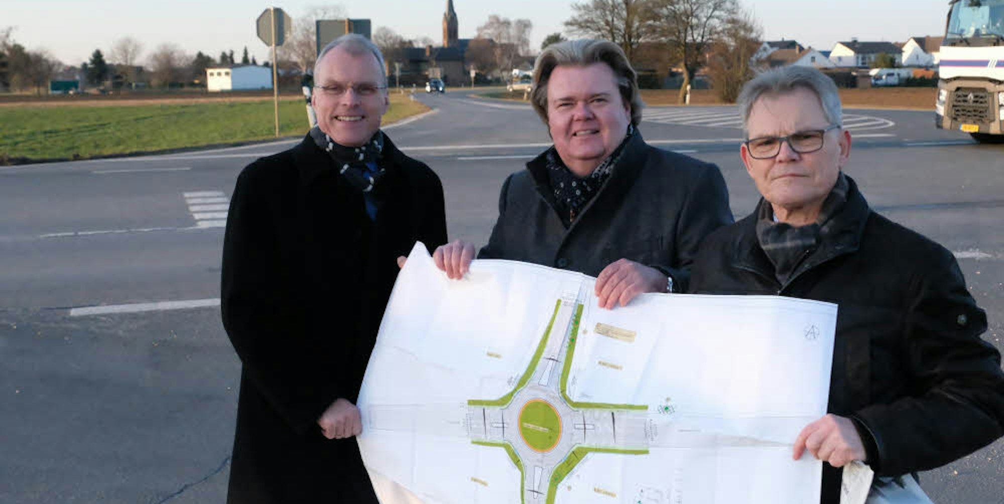 Kündigten den Bau des Kreisels an: Oliver Krauß, Klaus Voussem und Erwin Jakobs.