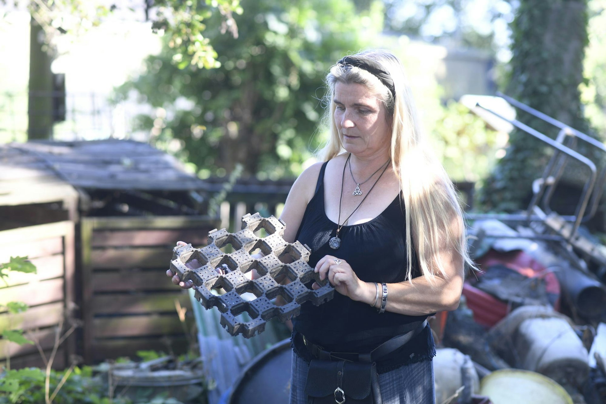 Sie hilft seit Monaten auf dem Hof: Angelika Kohlgraf. Als Nächstes sollen die gespendeten Paddockplatten verlegt werden.