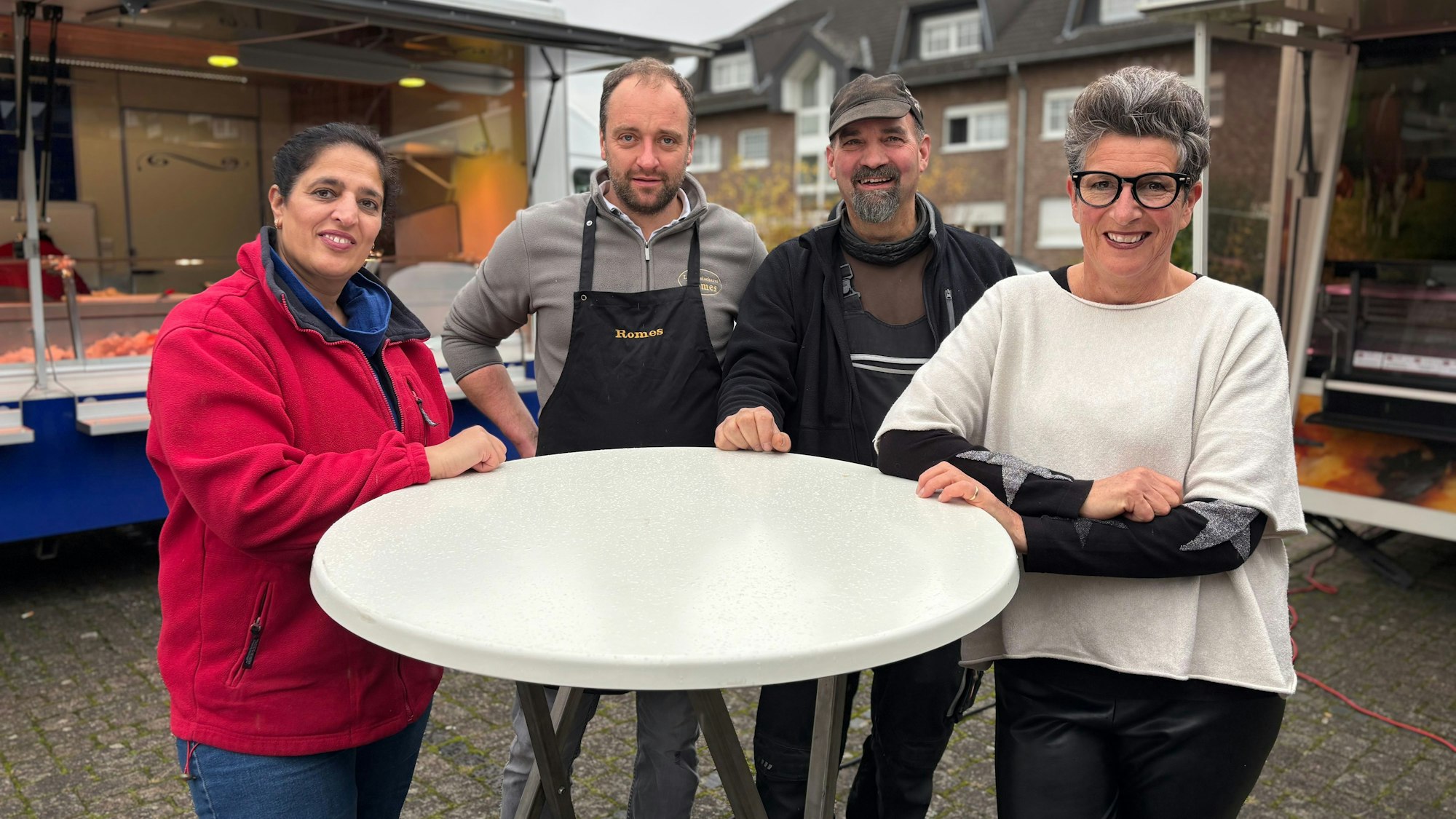 Die vier Verkäuferinnen und Verkäufer am Withnash-Platz in Weilerswist wünschen sich einen Ortswechsel und mehr Sichtbarkeit.
