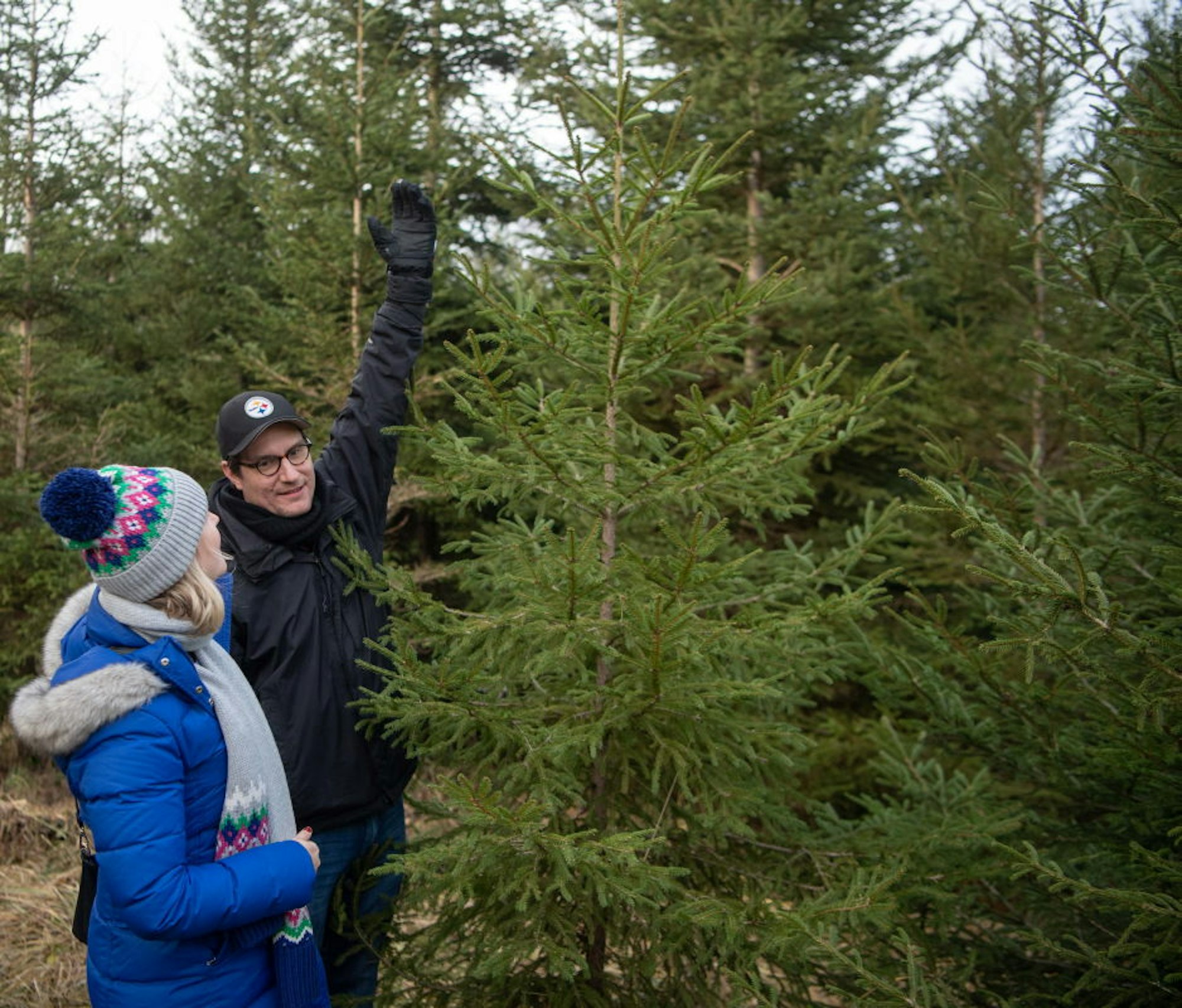 Es ist schon eine Herausforderung, ein Gewächs mit der richtigen Größe zu finden, mal ganz davon abgesehen, dass der Baum auch dicht gewachsen sein muss. Um die Größe zu ermitteln, streckt Brobach seinen Arm senkrecht nach oben. Ragt die Spitze über die Fingerkuppen hinaus, ist der Baum zu hoch – also weitersuchen. Der? Nein! Der? Nein, auch nicht. Die Auswahl wird geringer, das Nervenkostüm dünner. Doch erfahrene Baumjäger lassen sich so schnell nicht aus dem Konzept bringen. Vor allem dann nicht, wenn sich Tochter Klara, die eigentliche Entscheiderin, bisher nicht in die Überlegungen ihrer Eltern eingemischt hat.