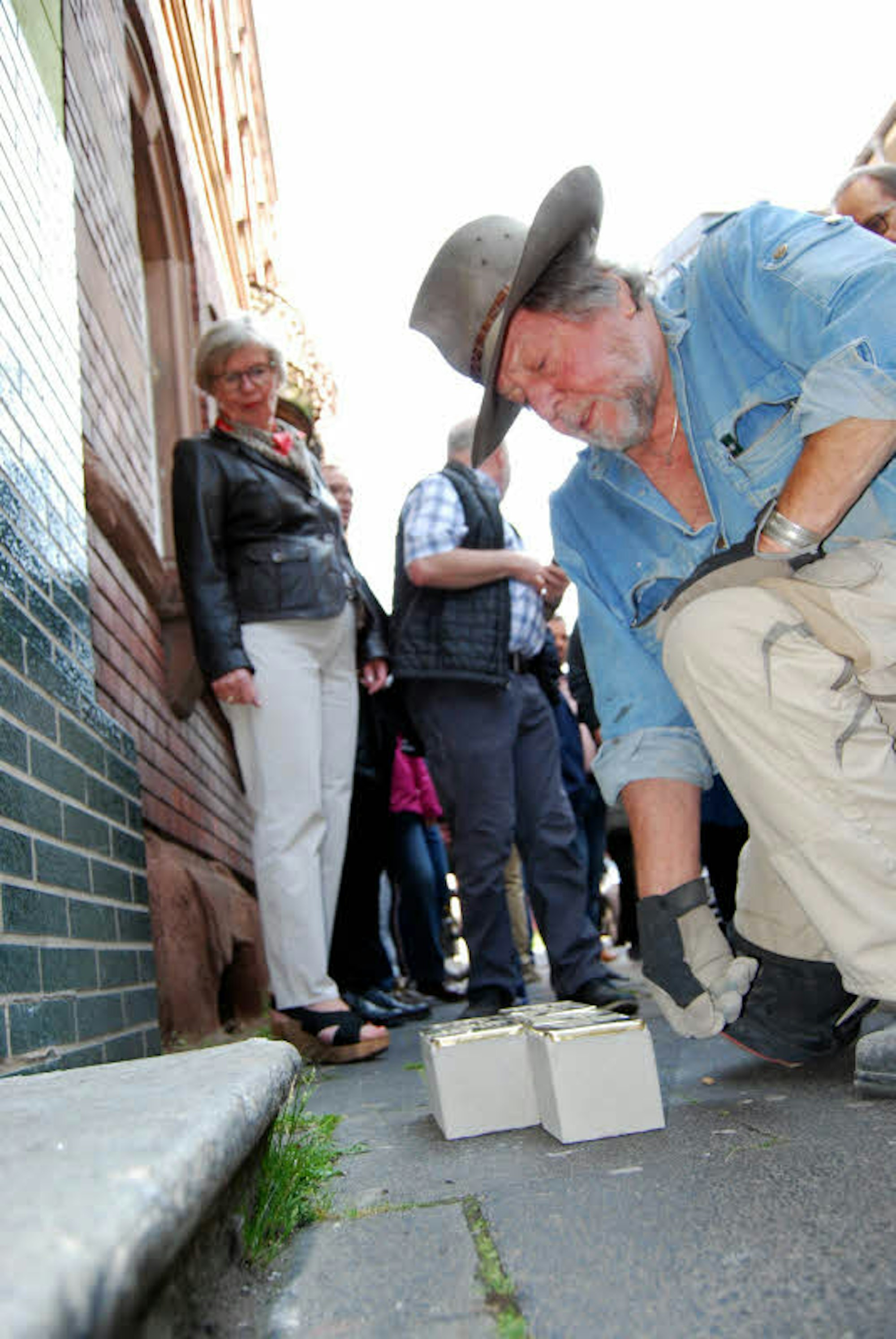 Das Schicksal von Babette und Friedrich Wilhelm Samuelsohn sowie weiterer Juden schilderte sie am Mittwoch, als Gunter Demnig in Euskirchen zum achten Mal Stolpersteine verlegte, um an Opfer des NS-Regimes zu erinnern. Der Berliner Künstler ließ die Quader mit Gedenktafeln aus Messing vor dem jeweiligen letzten selbst gewählten Wohnort der Frauen, Männer und Kinder in den Boden ein.