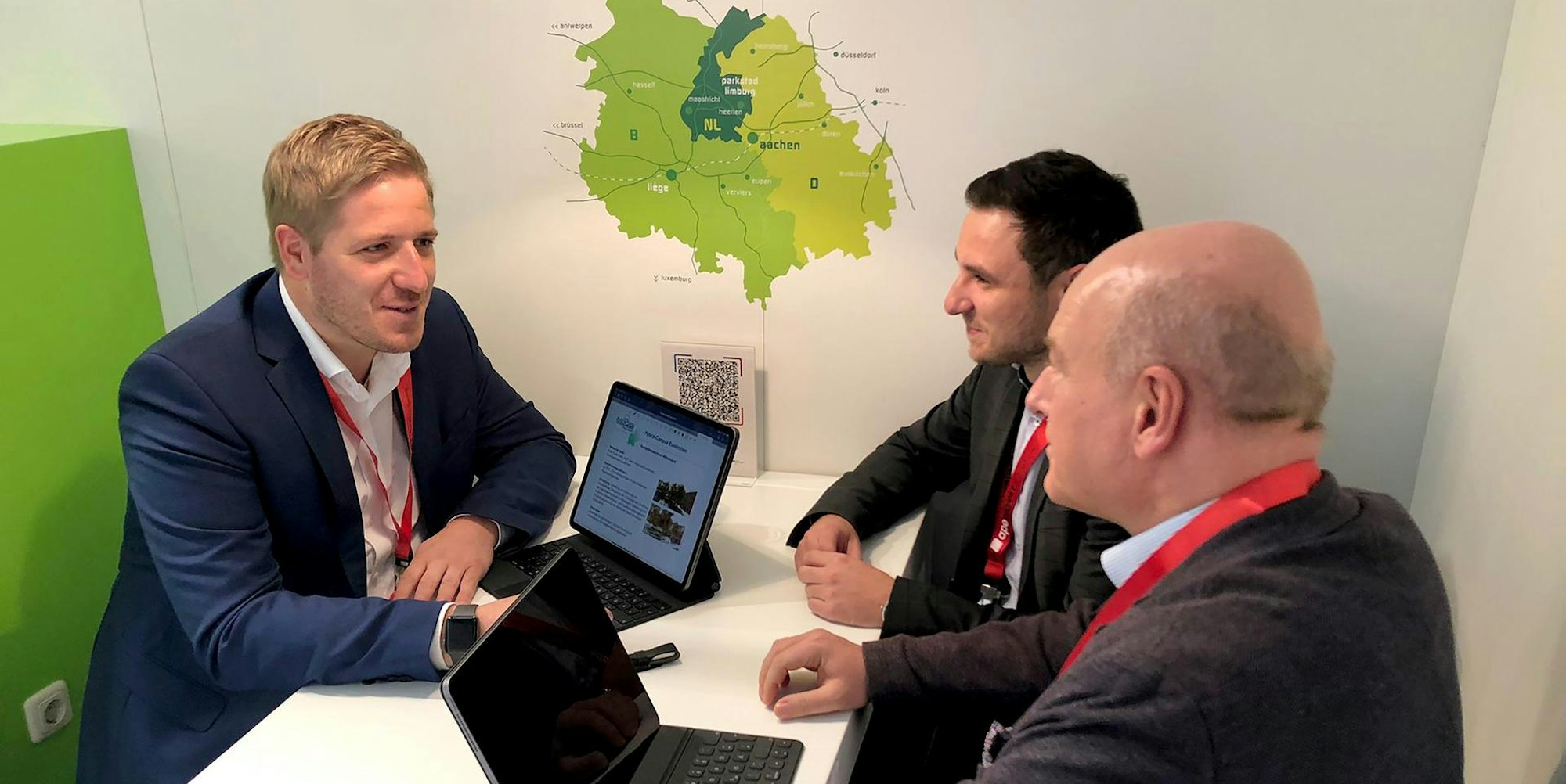 Auch mit anderen Kreisen und Kommunen will sich der Landrat austauschen und vernetzen. Aus diesem Grund präsentiert sich der Kreis Euskirchen wieder an einem Gemeinschaftsstand mit den Kreisen Heinsberg und Düren, der Städteregion Aachen sowie der Deutschsprachigen Gemeinschaft Belgiens. Über die Zukunft gemeinsamer Projekte der Partner wird ebenfalls auf der Messe gesprochen: „Wir haben beispielsweise das Wasserstoffnetzwerk Hydrogen Hub Aachen thematisiert. Wie können wir es weiterentwickeln, was sind die nächsten Schritte – das sind Fragen, die wir diskutiert haben“, erläutert Ramers. Ziel des Hydrogen Hubs ist es, die drei Kreise und die Städteregion zur Wasserstoff-Modellregion zu machen und eine nachhaltige Infrastruktur aufzubauen.