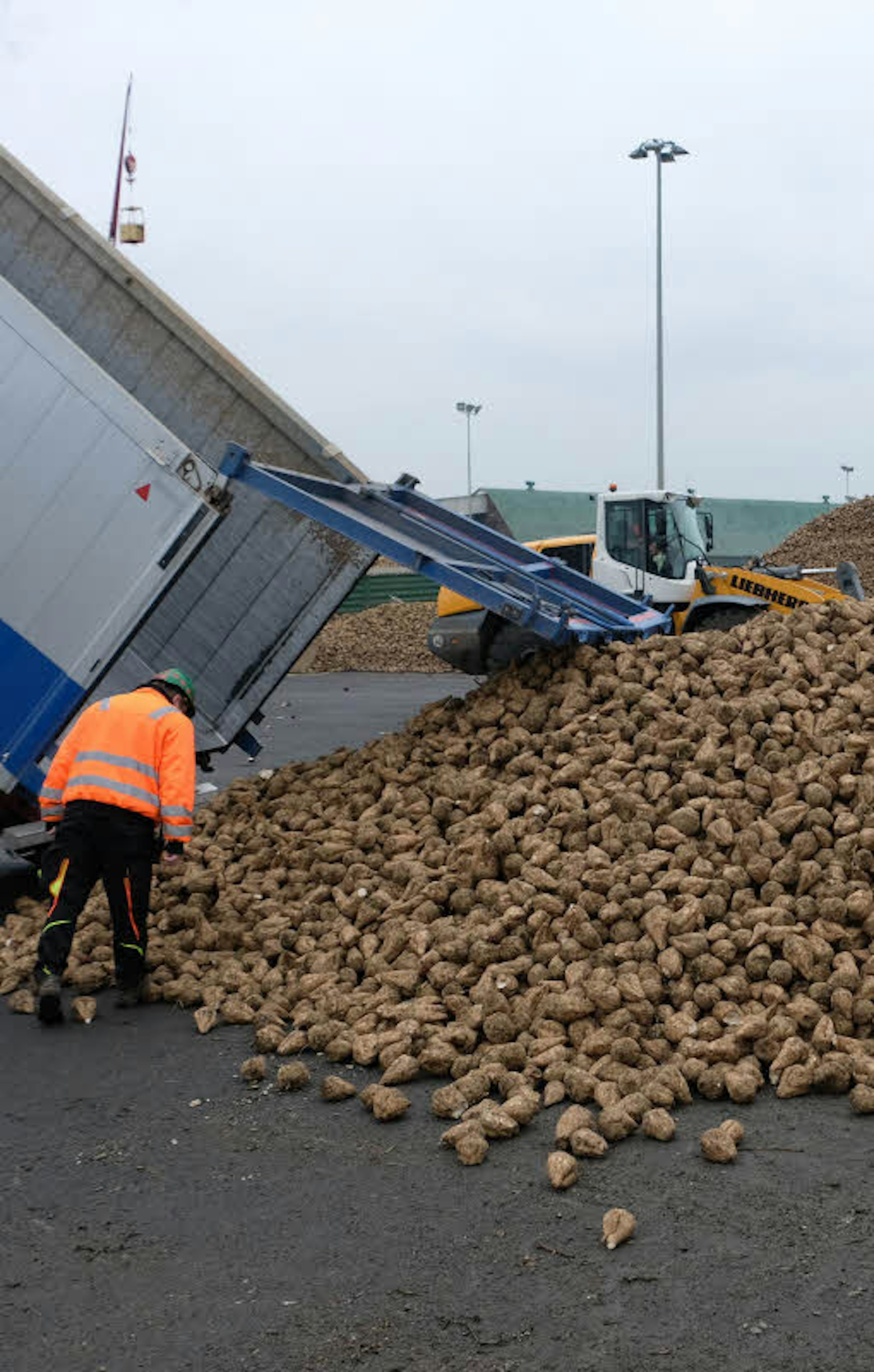Und sie sind schon wieder relativ selten im Straßenbild, denn das Gros der Zuckerrüben kommt auf modernen Muldenkippern daher. In der Zuckerfabrik Jülich koordiniert Heinz Leipertz die Zuckerrübentransporte vom Feld bis in die Fabriken Euskirchen, Jülich und Appeldorn. Die Rüben kommen aus Maifeld bei Koblenz, aus dem westlichen Ruhrgebiet, von der deutschen Seite der belgischen und niederländischen Grenze oder aus der Region südlich von Münster in die Fabriken.