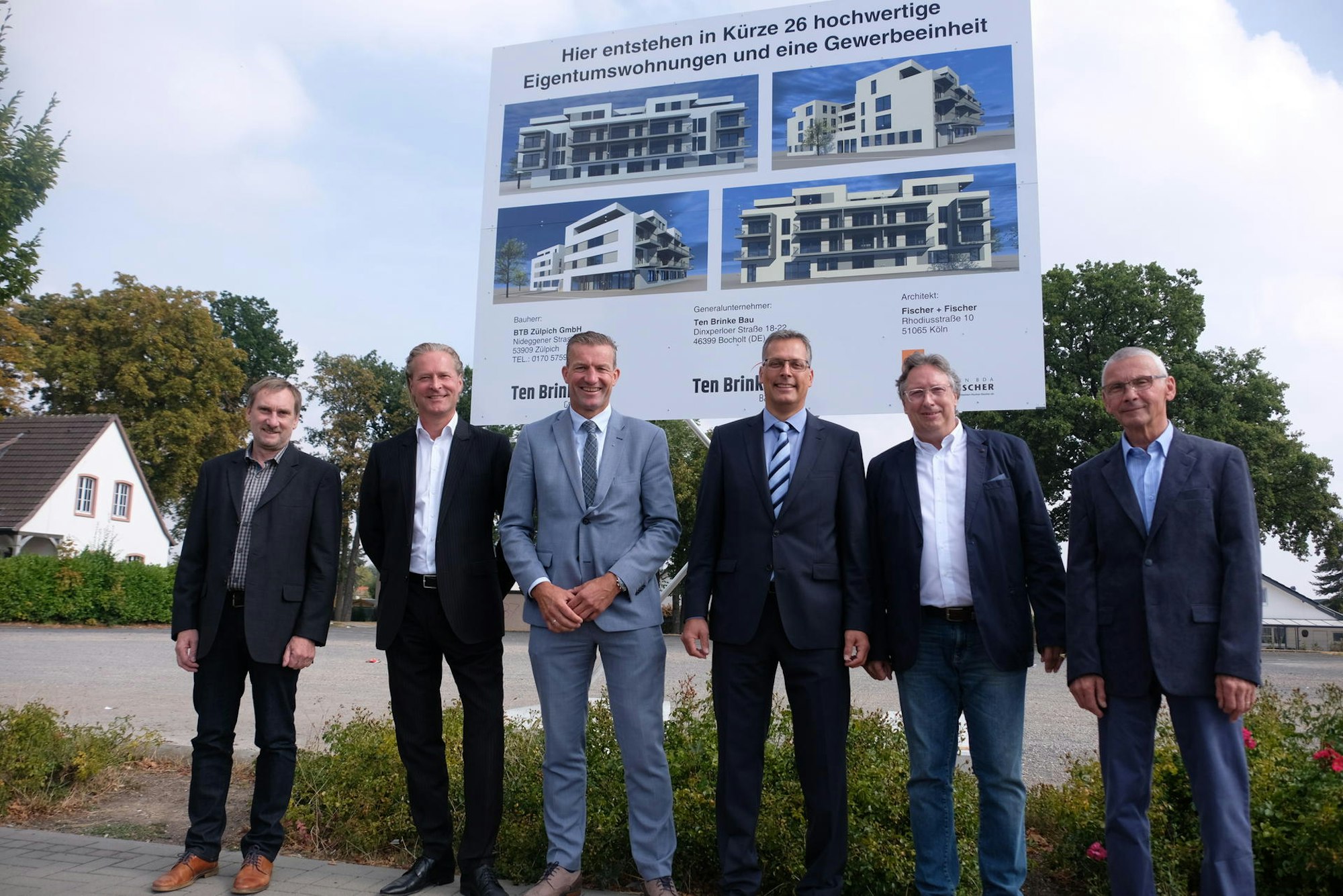 Freuen sich auf die Realisation des Gebäudekomplexes: Investoren, Verwaltungsspitze und die Lebenshilfe HPZ.