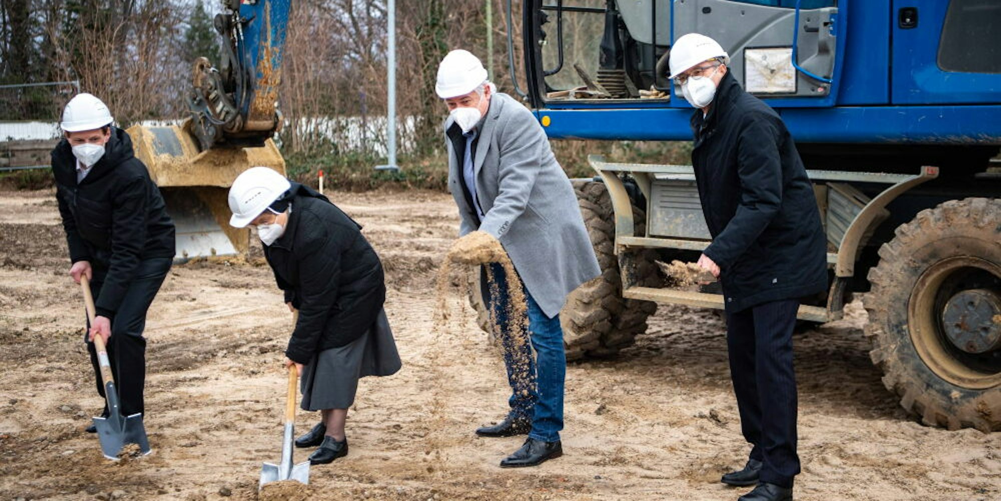 Spatenstich für den Erweiterungsbau: die Verantwortlichen der Marienborn gGmbH beim symbolischen Akt für das 2,5 Millionen Euro teure Vorhaben an der Nideggener Straße.