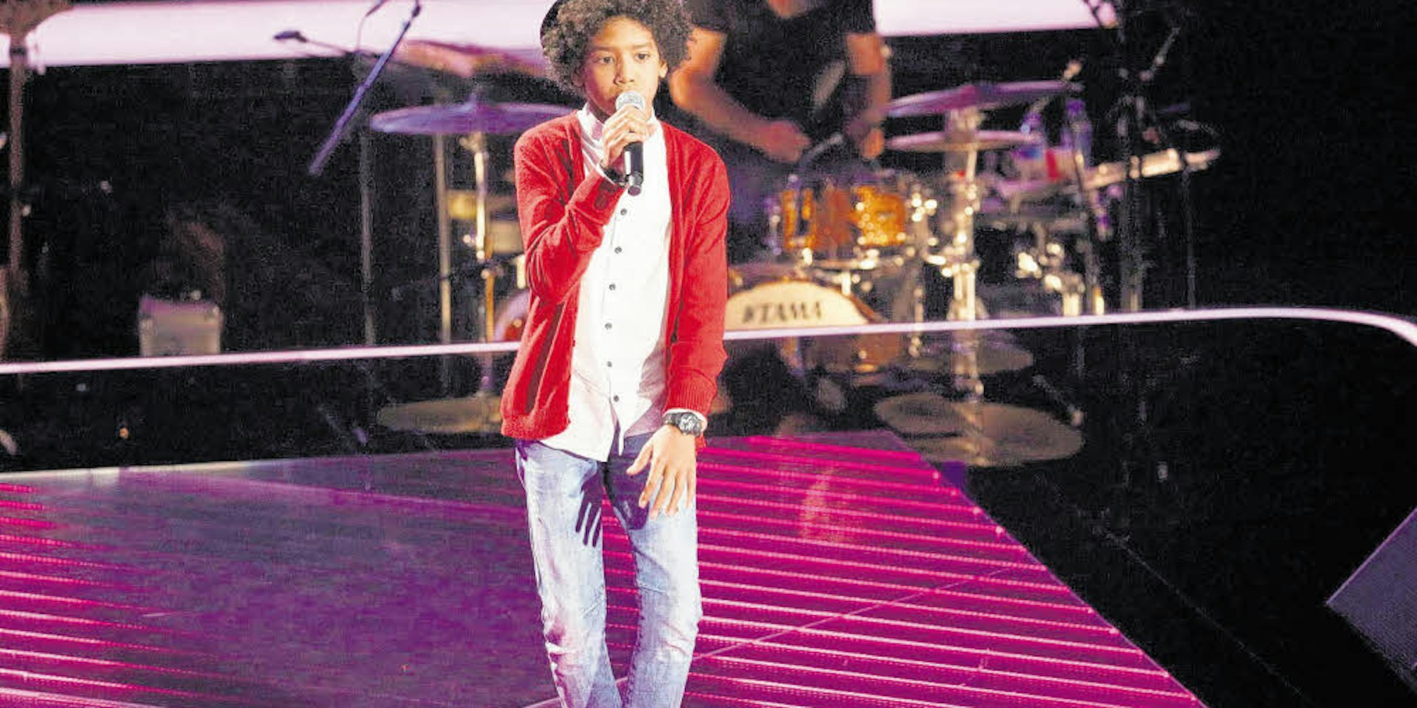 Auftritt in Berlin: Yves Fepessi singt in der Show „The Voice Kids“ den alten Hit „Reet Petite“.