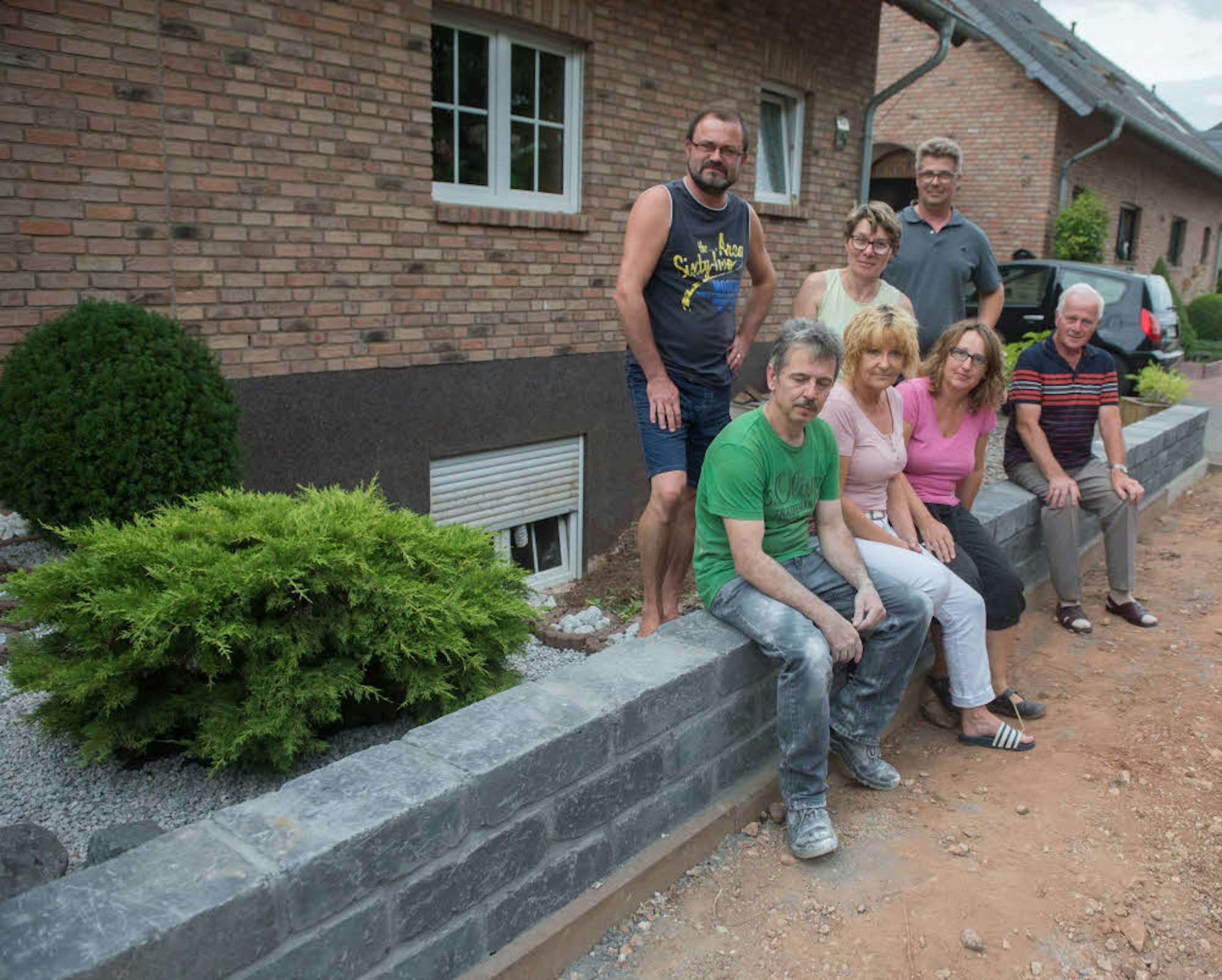 Silvia Bröske wohnt mit ihrem Mann Frank ebenfalls in unmittelbarer Nähe zum Rotbach. Allein im Keller habe sie Schäden in Höhe von 70 000 Euro gehabt. In Absprache mit ihren Nachbarn, die die andere Doppelhaushälfte bewohnen, wurde in den vergangenen Tagen eine gut 60 Zentimeter hohe Steinmauer errichtet „Niemand von uns hatte die Absicht, eine Mauer zu errichten“, sagt Silvia Bröske: „Das nächste Hochwasser kommt bestimmt. Dann hoffen wir, dass die Mauer ihren Zweck erfüllt. So lange es nicht regnet, nutzten wir sie als Treffpunkt.