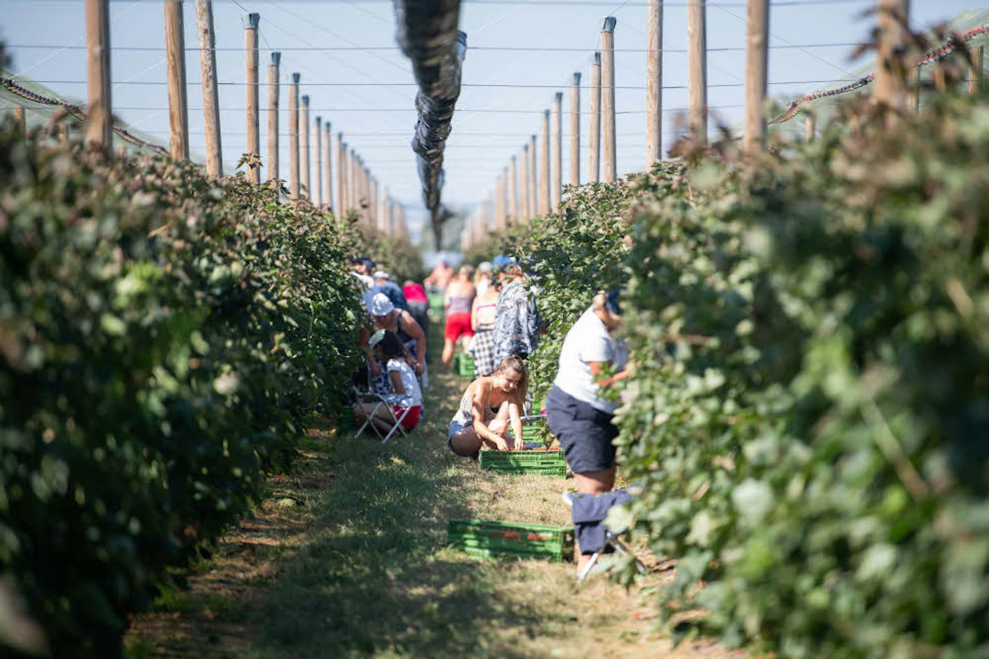 Reihe für Reihe, Strauch für Strauch: 120 Erntehelfer sind während der Johannisbeer-Saison auf dem Hubertushof beschäftigt.