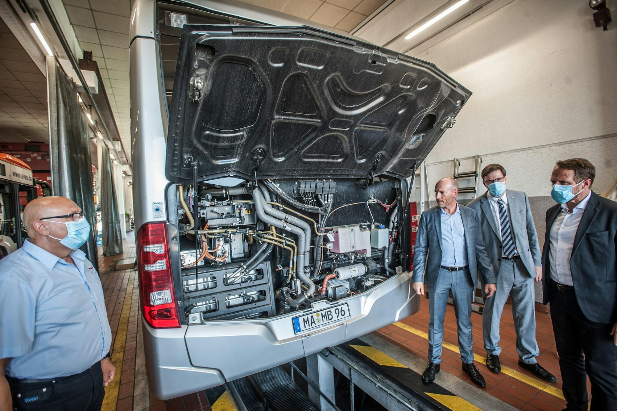Die Herausforderung beim Fahren eines E-Busses liege nicht beim Gas geben oder Bremsen, sondern dass der Bus ins „Segeln“ kommt, also ins Rollen, damit er keine Energie verbraucht. Wird das Fahrzeug gebremst, generiert es Strom, beim Anfahren verbraucht es wiederum welchen. „Man muss sehr vorausschauend fahren. Deswegen müssen wir auch die Infrastruktur gut kennen und wissen wann die Ampel rot wird und entsprechend steuern, ohne dass jedoch der Individualverkehr behindert wird“, erzählte Maslovaric. Zurzeit kann der eCitaro mit einer Batterieladung 200 Kilometer weit fahren, allerdings rechnen Kretkowski und Oberbürgermeister Uwe Richrath damit, dass die Reichweiten im Zuge der rasanten technischen Entwicklung in den kommenden Jahren steigen werden. Ähnlich wie ein Dieselbus hat auch das Grundgerüst des E-Busses eine Lebenszeit von etwa zwölf bis 13 Jahren, jedoch muss beim E-Bus alle acht Jahre die Batterie ausgetauscht werden.