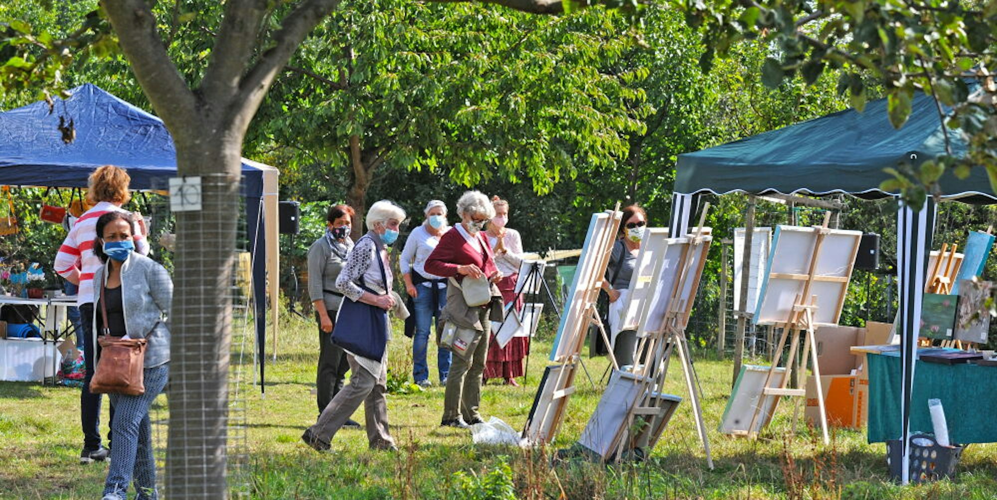Idee dank Rotwein und CoronaReger Zulauf beim Kunstbasar auf Obstbaumwiese