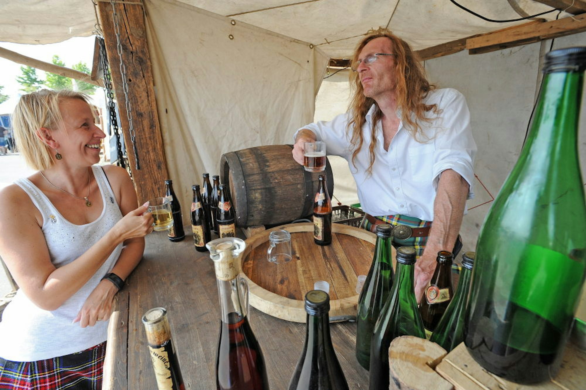 Leverkusen – Die ersten Irish Days sahen noch ganz anders aus. Nur etwa 150 Leute kamen in den Neuland-Park, um der Musik von The Lonely Irishman zu lauschen. Einer habe damals einfach Brötchen geschmiert. Das lasse sich kaum mit diesem Wochenende, zehn Jahre später, vergleichen. Matthias Hermann Brandes, der Vorsitzende der Irlandfreunde Leverkusen, lacht. Gut 700 Besucher, so schätzt der Organisator stolz, hätten an diesem heißen Samstag ihren Weg zu den Irish Days gefunden. Abgesehen davon hat sich die Veranstaltung sichtlich mehr geöffnet, sodass hier mittlerweile insgesamt keltische Kultur gefeiert werde, die neben Irland auch Schottland, Wales, England und Nordfrankreich umfasst.