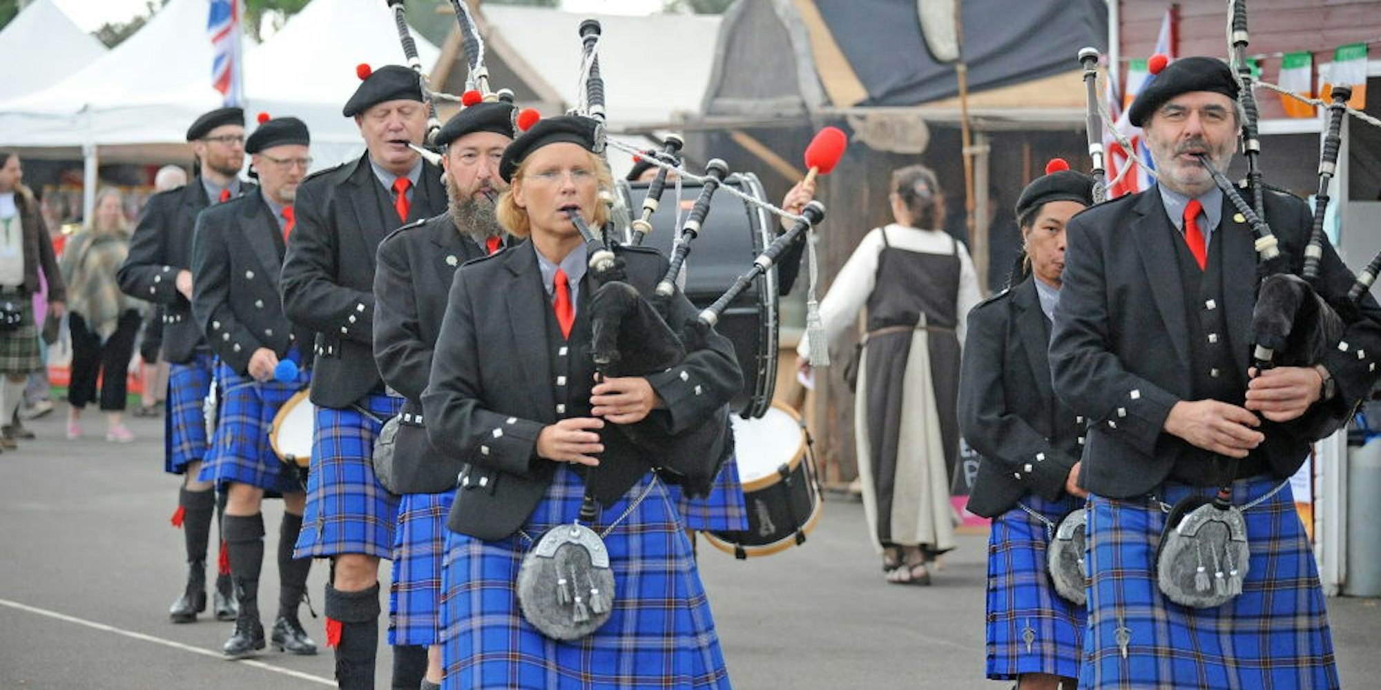 Dudelsackklänge im Neuland-Park: Die Wupper District Pipe Band marschierte lautstark auf.