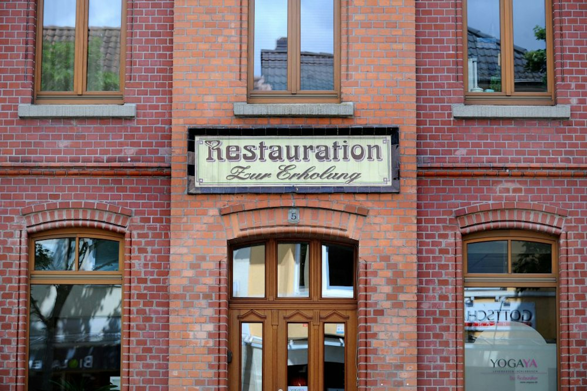 Hier vorbei führte die „Kutschenschnellstraße“ von Köln nach Berlin. „Bevor die Händler ins katholische Köln kamen, konnten sie hier beten und übernachten“, berichtet Lorenz. Und speisen im Restaurant „Zur Erholung“, von dem heute nur noch der Schriftzug übrig ist. So entwickelte sich Schlebusch auch als Ausgangspunkt für Landpartien der Wohlhabenden ins Bergische, insbesondere zum Altenberger Dom.