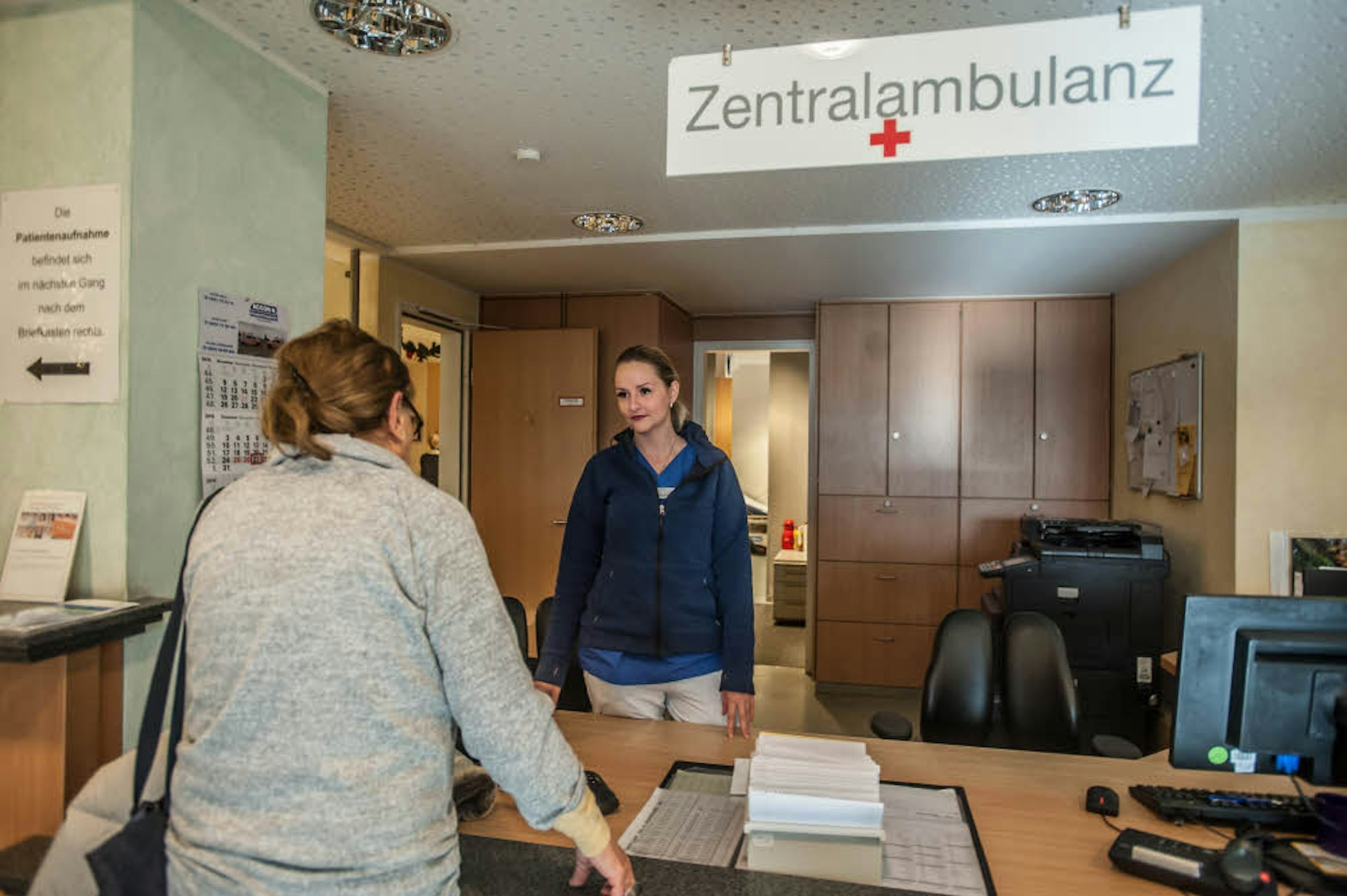 Jaqueline Jarzabeth nimmt an der Zentralambulanz eine Patientin auf.