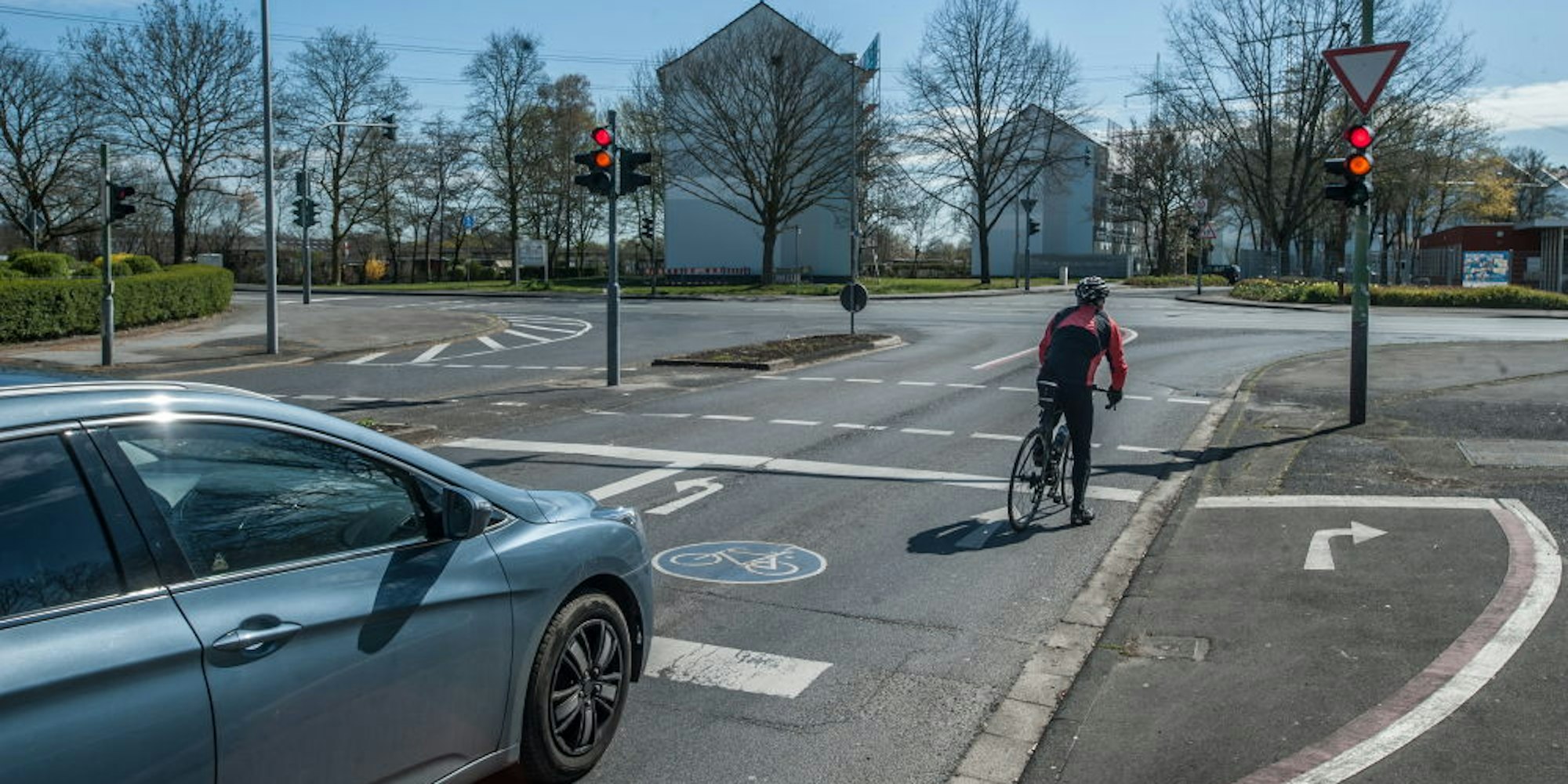 Dass Radfahrer an Ampeln und Kreuzungen benachteiligt werden, soll der Vergangenheit angehören. Der ADFC wünscht sich vorgezogene Aufstellflächen für Radfahrer an allen Kreuzungen – so wie sie beispielsweise auf der Elbestraße in Rheindorf an der Kreuzung mit der Solinger Straße eingerichtet worden sind. Auch sollten die Wartezeiten für Radfahrer an Ampeln verkürzt werden.