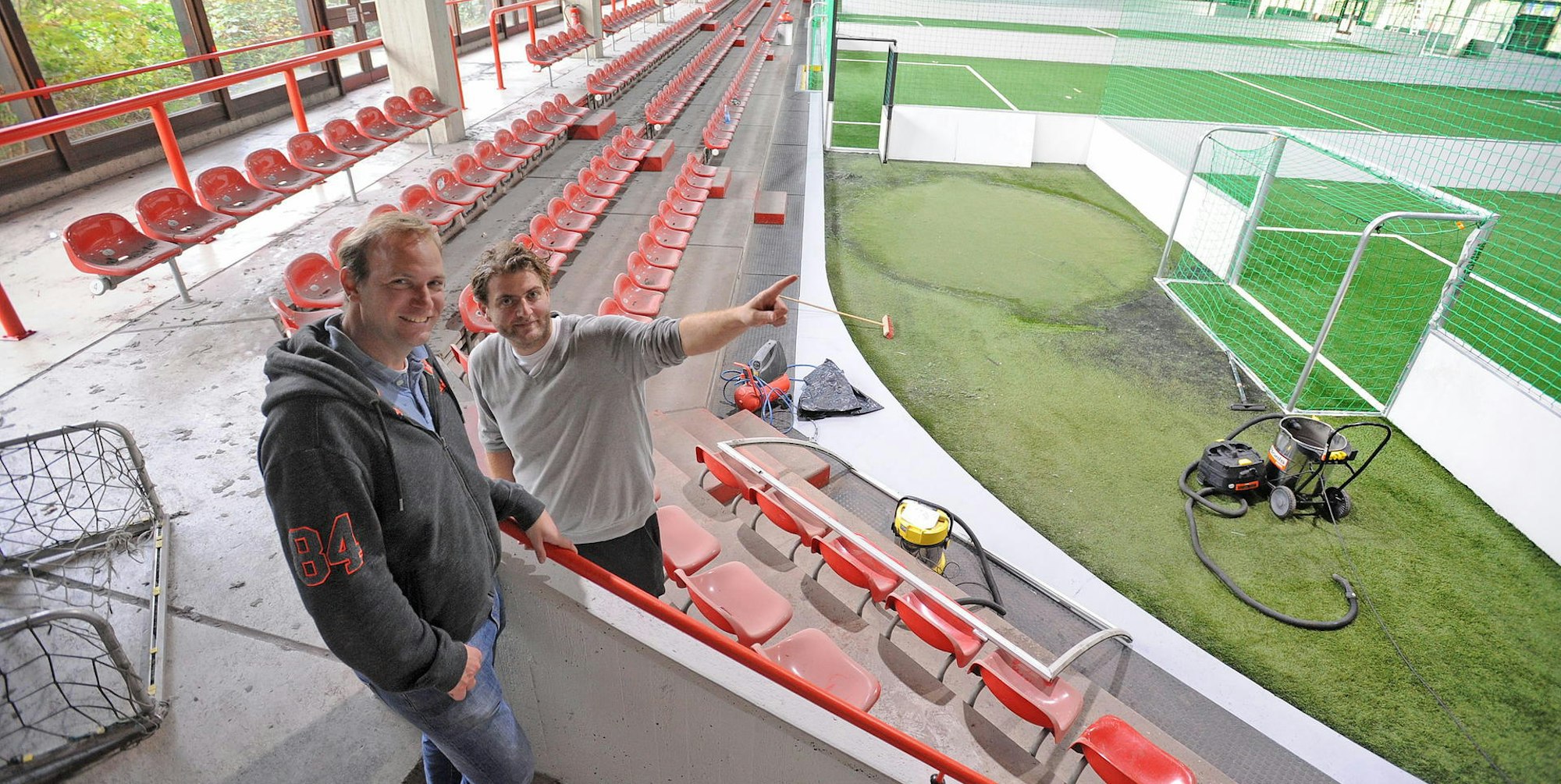 Leverkusen – Es sieht zwar alles noch ein bisschen nach Kraut und Rüben aus – um einmal den Volksmund-Jargon zu bemühen. Aber: Es geht voran und diese Halle wird in ein, zwei Wochen wieder richtig heimelig und auch ein bisschen kultig aussehen. Eben so, wie eine Halle aussehen muss, in der die Leute Fußball spielen. Wohlgemerkt: Nicht Profis. Sondern Fans. Freizeitsportler. Hobbykicker. Leute wie Sebastian Pastor (36) und Maximilian Bremicker (38).