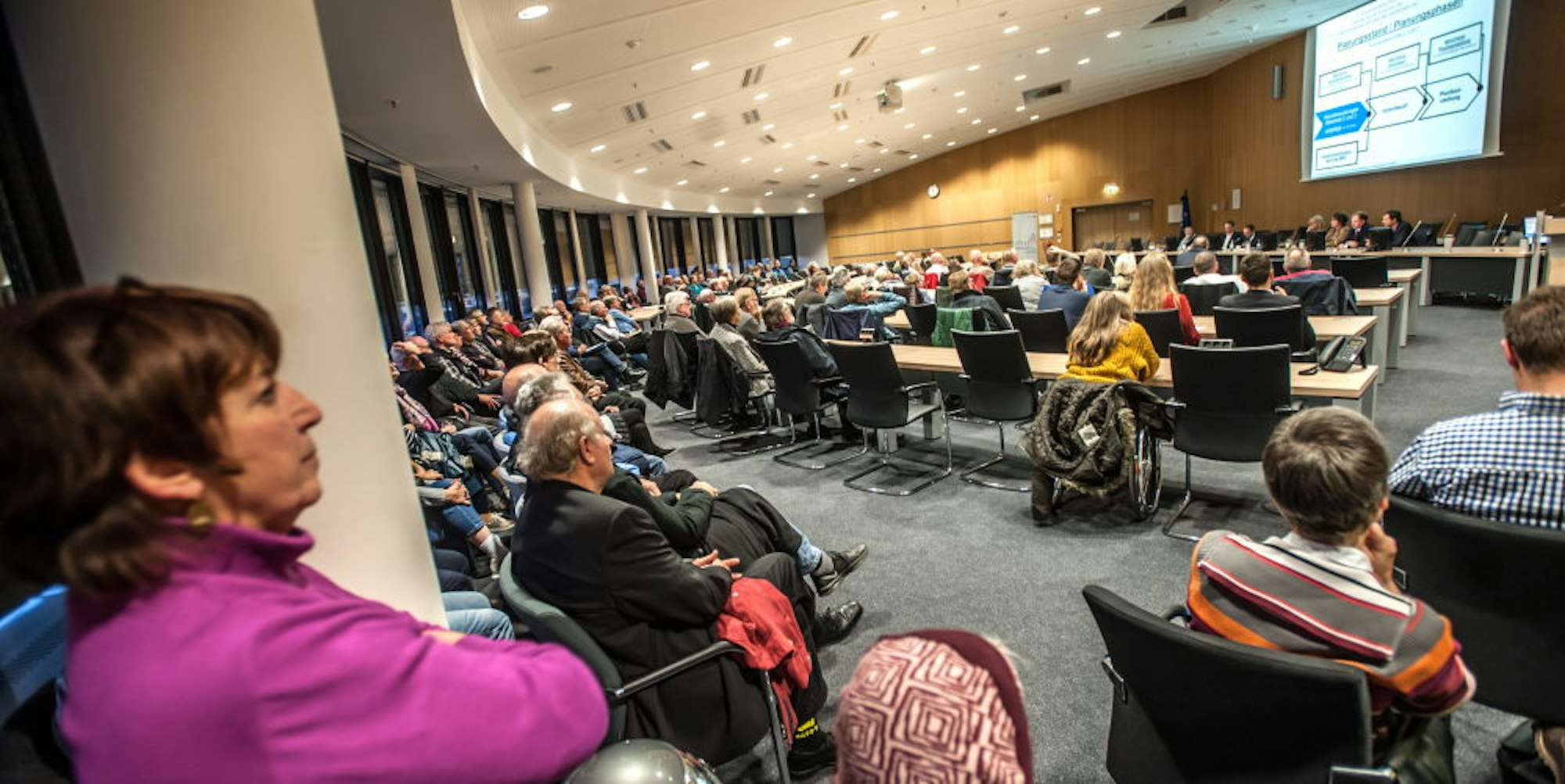 Die gut hundert Besucherinnen und Besucher, die sich an den Tischen der Ratsmitglieder und in den Zuschauerreihen niedergelassen hatten, folgten konzentriert den trockenen Ausführungen der Projektverantwortlichen Hans Schnitzler und Thomas Raither, die darlegten, welche Kosten, Bauzeiten und Nebeneffekte von ihren Plänen zu erwarten seien und weshalb welche Lösung nach Berlin gemeldet worden sei. Dort muss schließlich das Bundesverkehrsministerium in naher Zukunft entscheiden, wie und wann die Bundesautobahnen in Leverkusen gebaut werden. Und erst wenn es die offizielle Planfeststellung durch die Bezirksregierung Köln gegeben hat, können Leverkusener individuell dagegen Klage erheben.