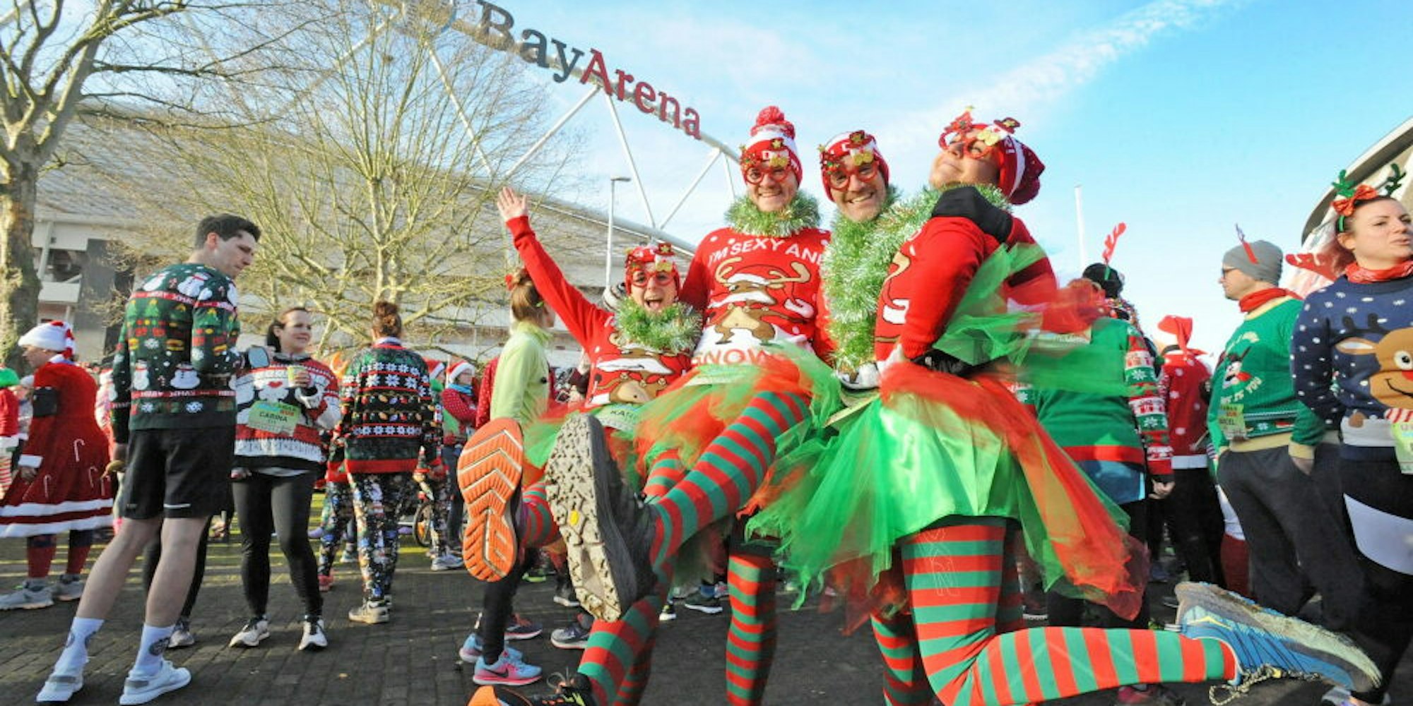 Leverkusen – Mit schön hässlichen Weihnachtspullis einen Lauf absolvieren – der Ugly Christmas Sweater Run hat sich in Leverkusen etabliert und erfreute sich in den vergangenen Jahren großer Beliebtheit (wie auch 2019, siehe Foto). Auch er fällt coronabedingt dieses Jahr aus. Stattdessen gibt es eine Corona2020 – Foto-Aktion #UCSRLEV. Der Sportpark Leverkusen schreibt: „Trotz der Absage wollen wir alle Läuferinnen und Läufer natürlich nicht davon abhalten, ihre wunderschön hässlichen Weihnachtspullis zu präsentieren.