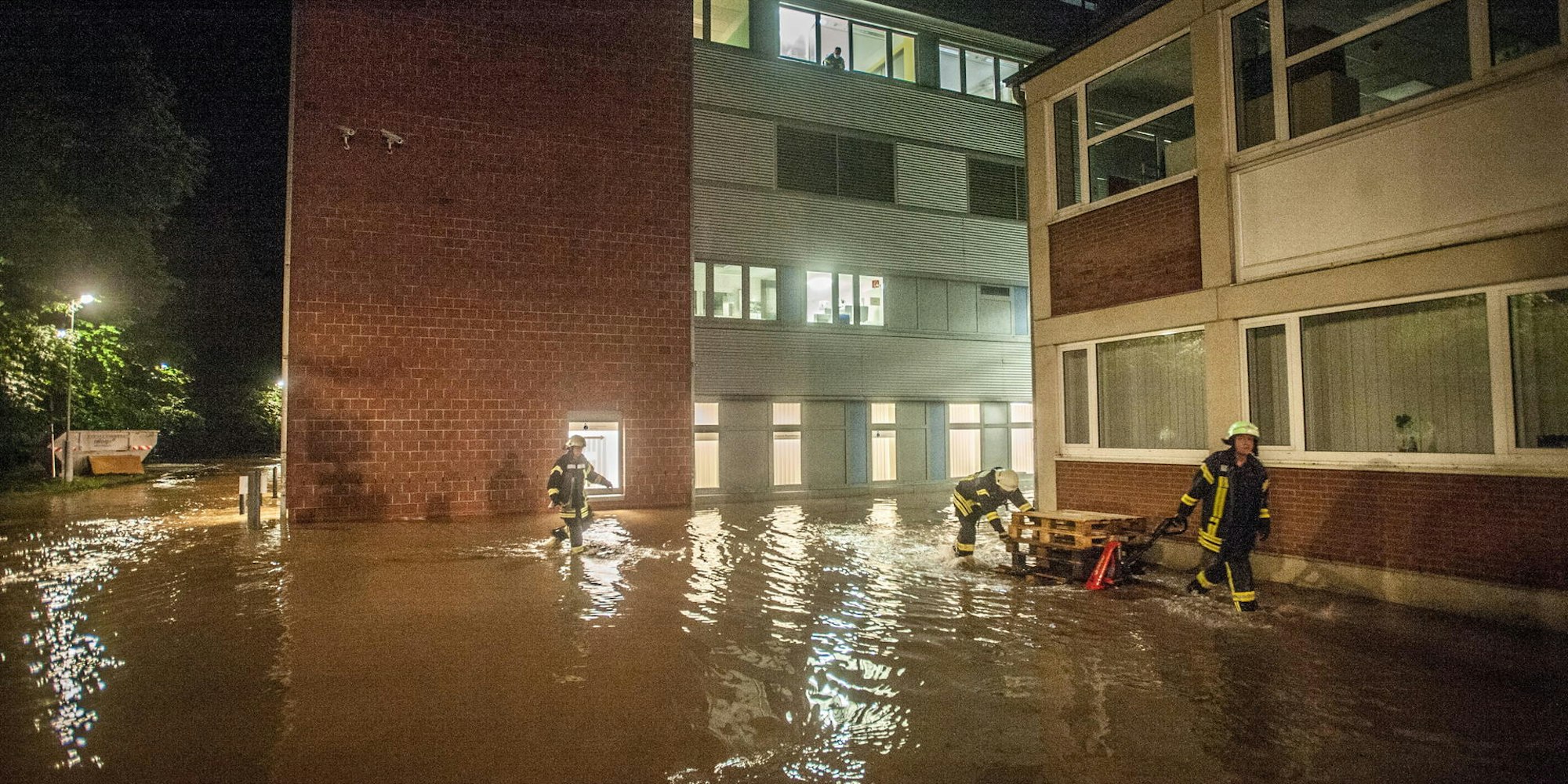Nächtlicher Kampf um den letzten trockenen Trafo im Klinikum: Mit diesem Wasserstand hatte niemand gerechnet.