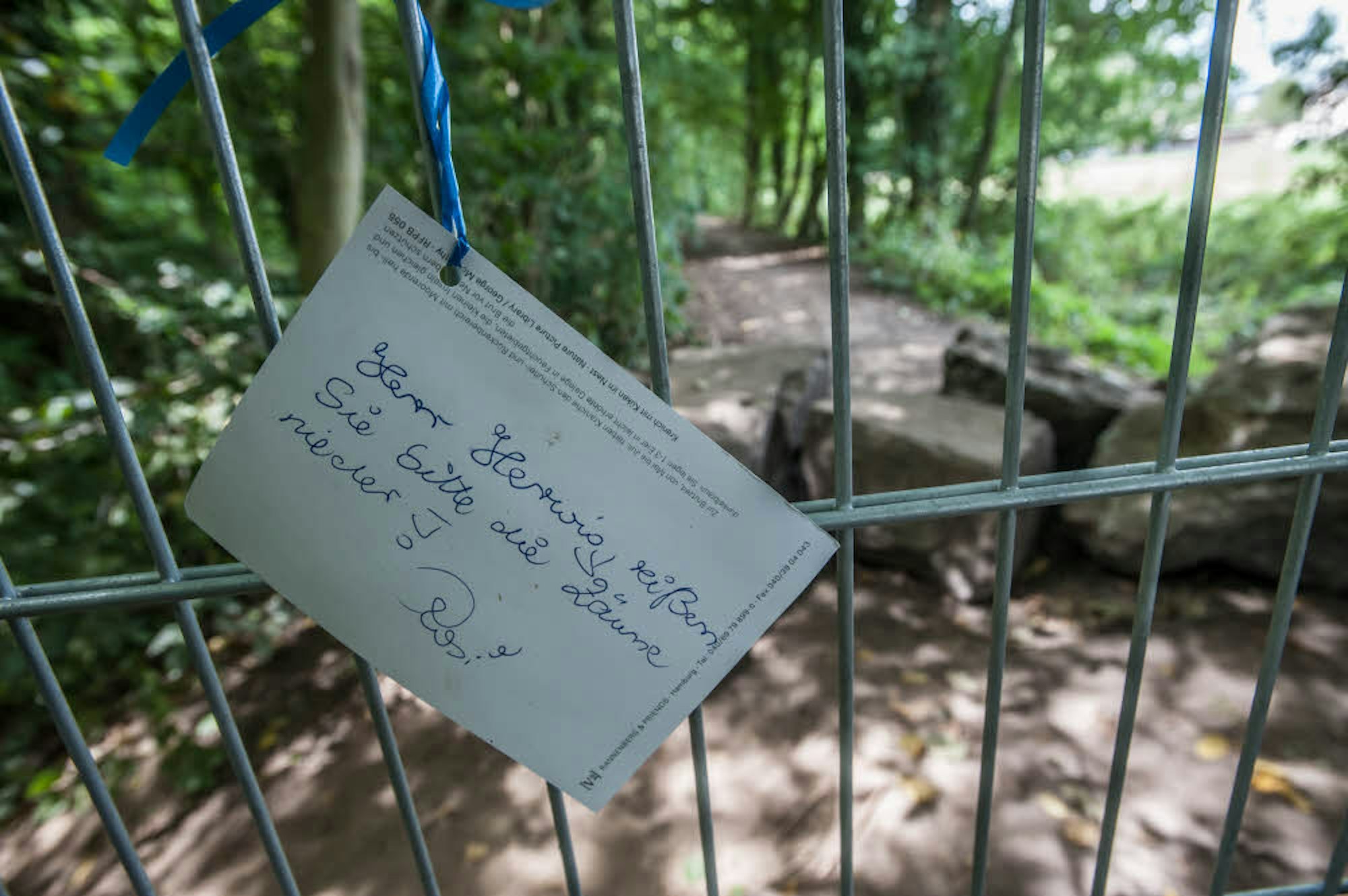 Das Absperrgitter auf dem Schlebuscher Dhünndeich hat sich mit zahlreichen Zetteln zu einer Art „Klagemauer“ entwickelt.