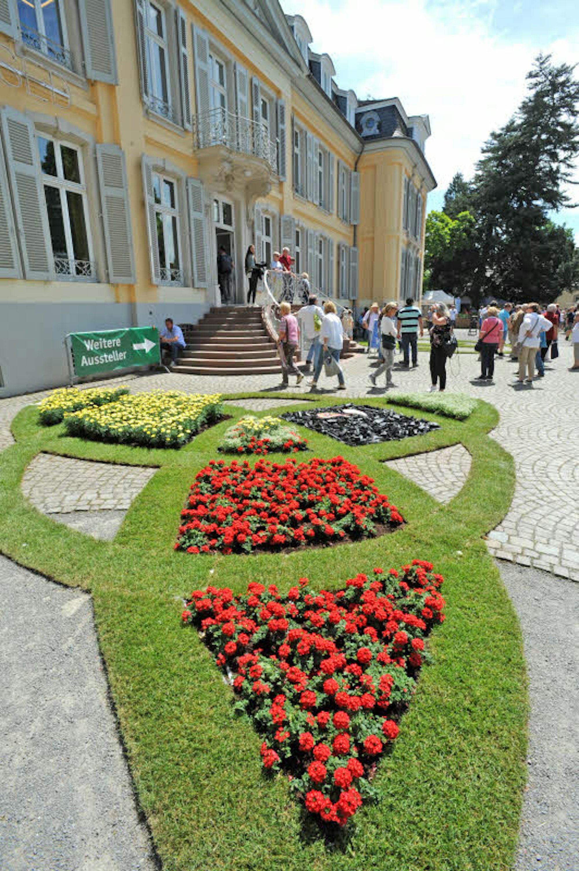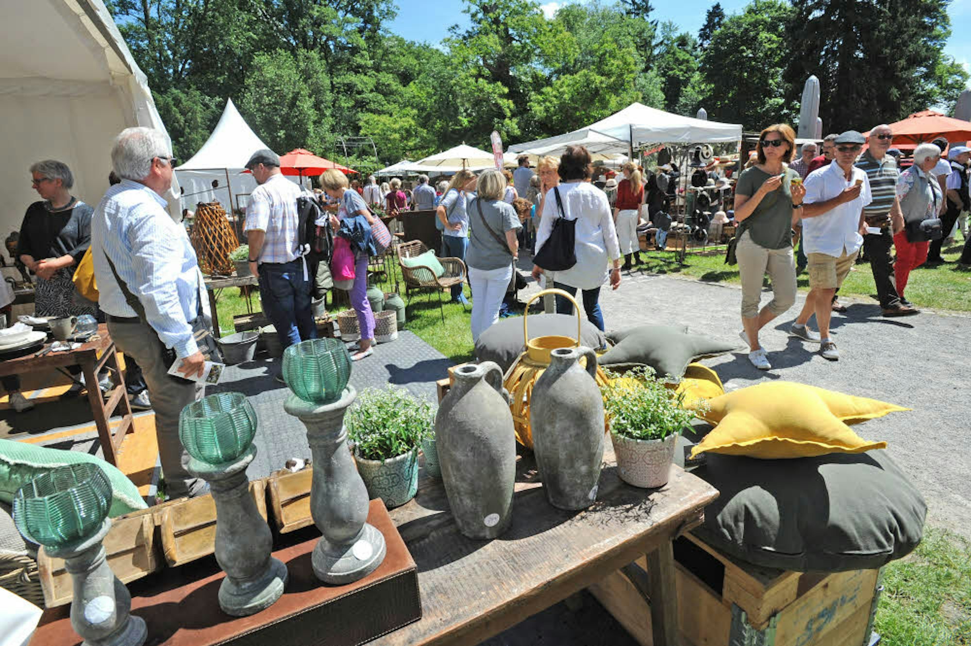 Hinter den Toren scheint alles einen Takt langsamer und gelassener zu gehen. Und diese weißen Zuckerhüte, das sind rund 150 Aussteller, die ihre spitzen Zelte teils in kleine Boutiquen verwandelt haben. Ganz gleich ob mit Pflanzen oder Möbeln, Mode oder Schmuck, alle stehen sie den Besuchern Spalier auf ihrem Rundgang durch den Schlosspark.