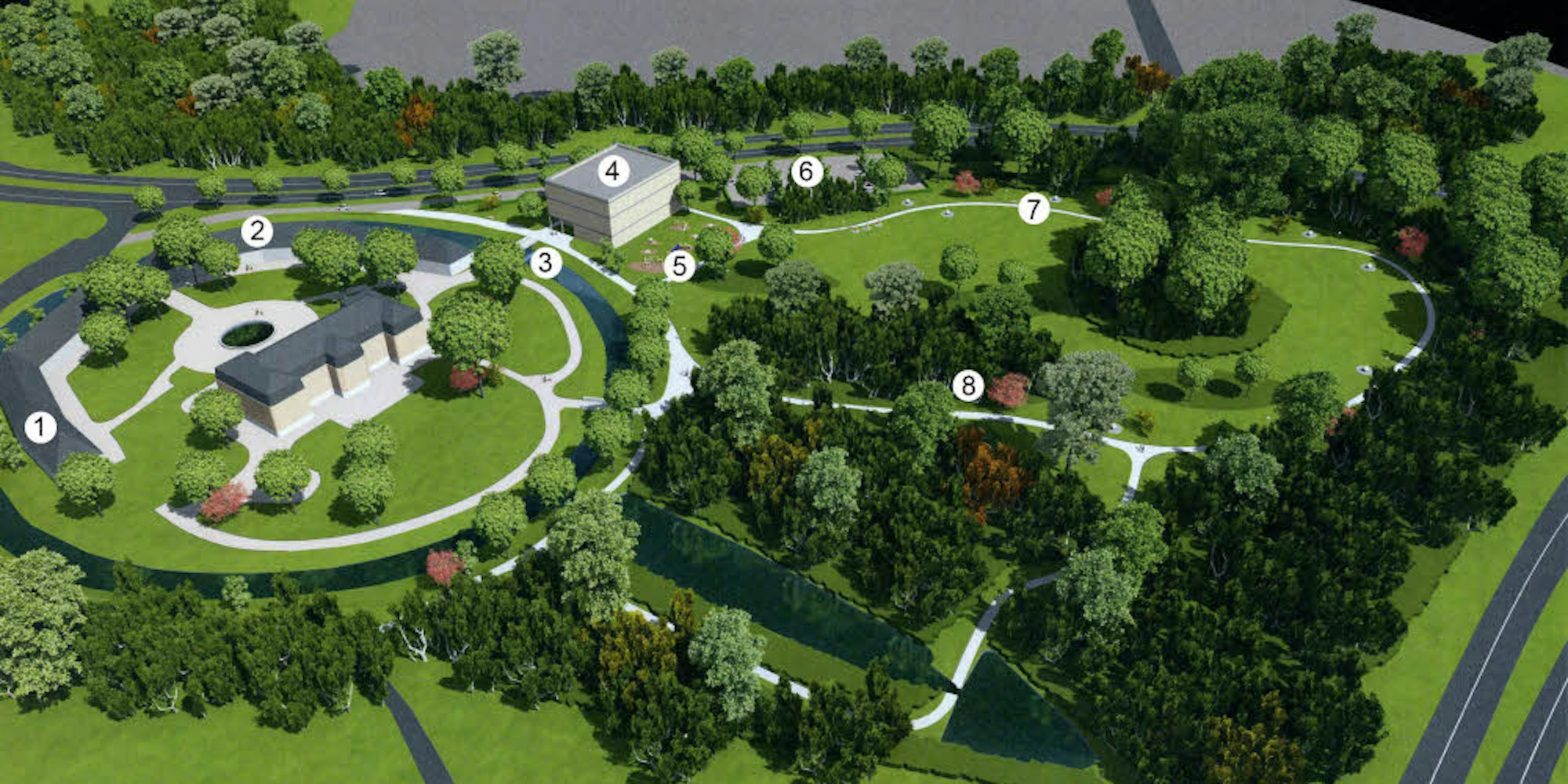 Einzelne Vorschläge des Standortkonzeptes umfassen: einen neuen Gartensaal in den Remisen und Umzug des Kunstvereins (1), Umbau der Schlossgastronomie (2), Bau einer neuen Brücke über den Schlossgraben (3), einen möglichen Museums-Zubau (4), einen Kinder-Museumsspielplatz (5), einen weiteren Parkplatz für 100 Autos (6), einen ausgebauten Rundweg für Fußgänger und Radfahrer mit den Skulpturen des Schlossparks (7) sowie einen Naturdenkmal-Lehrpfad mit den vorhandenen alten Bäumen (8).