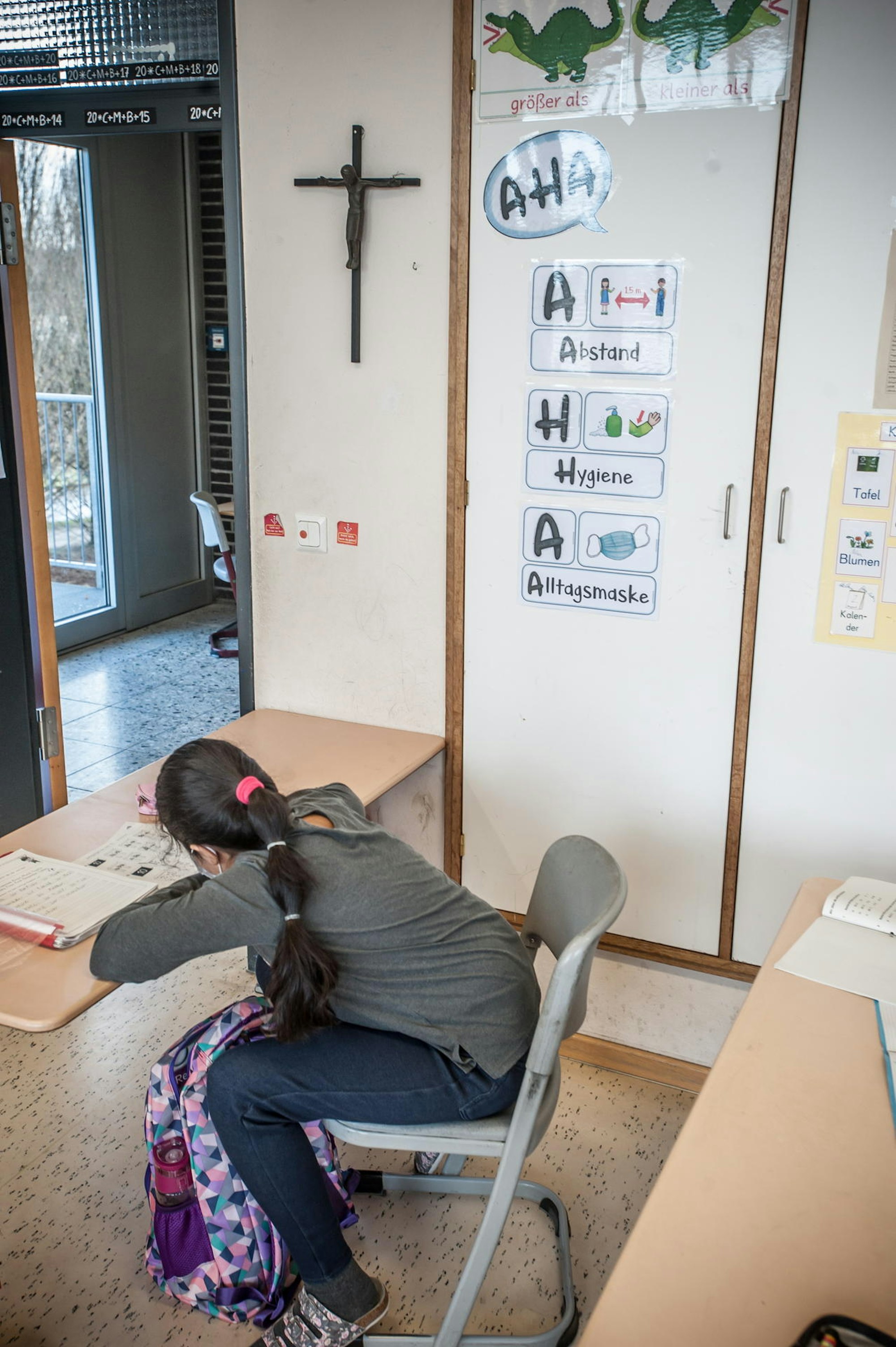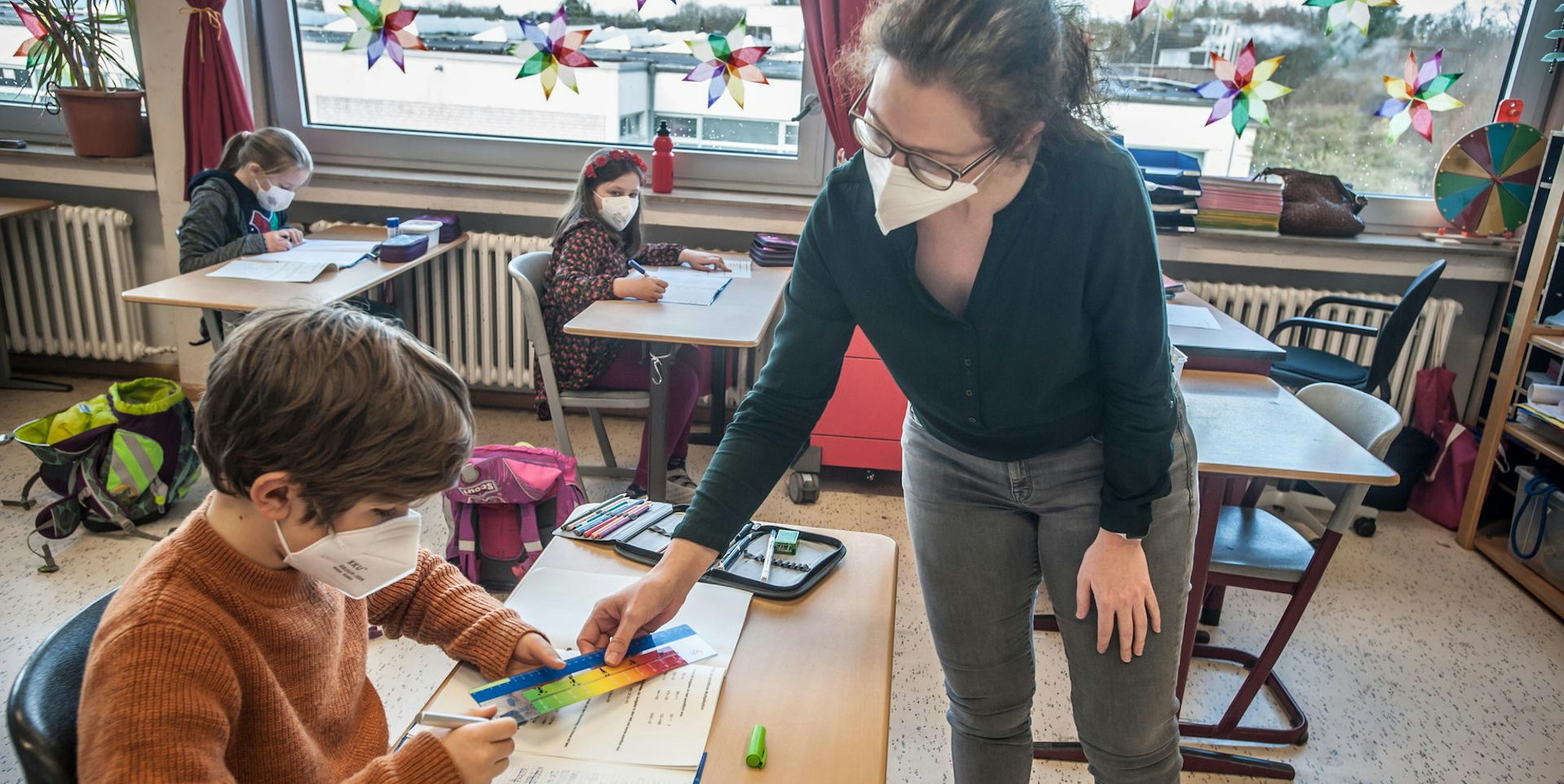 Die Lehrerinnen sind glücklich darüber, wieder in der Schule sein zu können. „Wir lieben ja unseren Job“, sagt Impelmann. Aber natürlich sei auch immer Sorge dabei, auch wenn sie betont, dass die Kinder sich super an die Hygieneregeln halten. „Wir sind jetzt hier 14 Haushalte in einem Raum, das kennt man ja gar nicht mehr.“ Dem Vorstoß, Lehrer frühzeitig zu impfen, steht sie positiv gegenüber. „Die Impfreihenfolge hat ihren Sinn und wir wollen uns nicht vordrängeln.“
