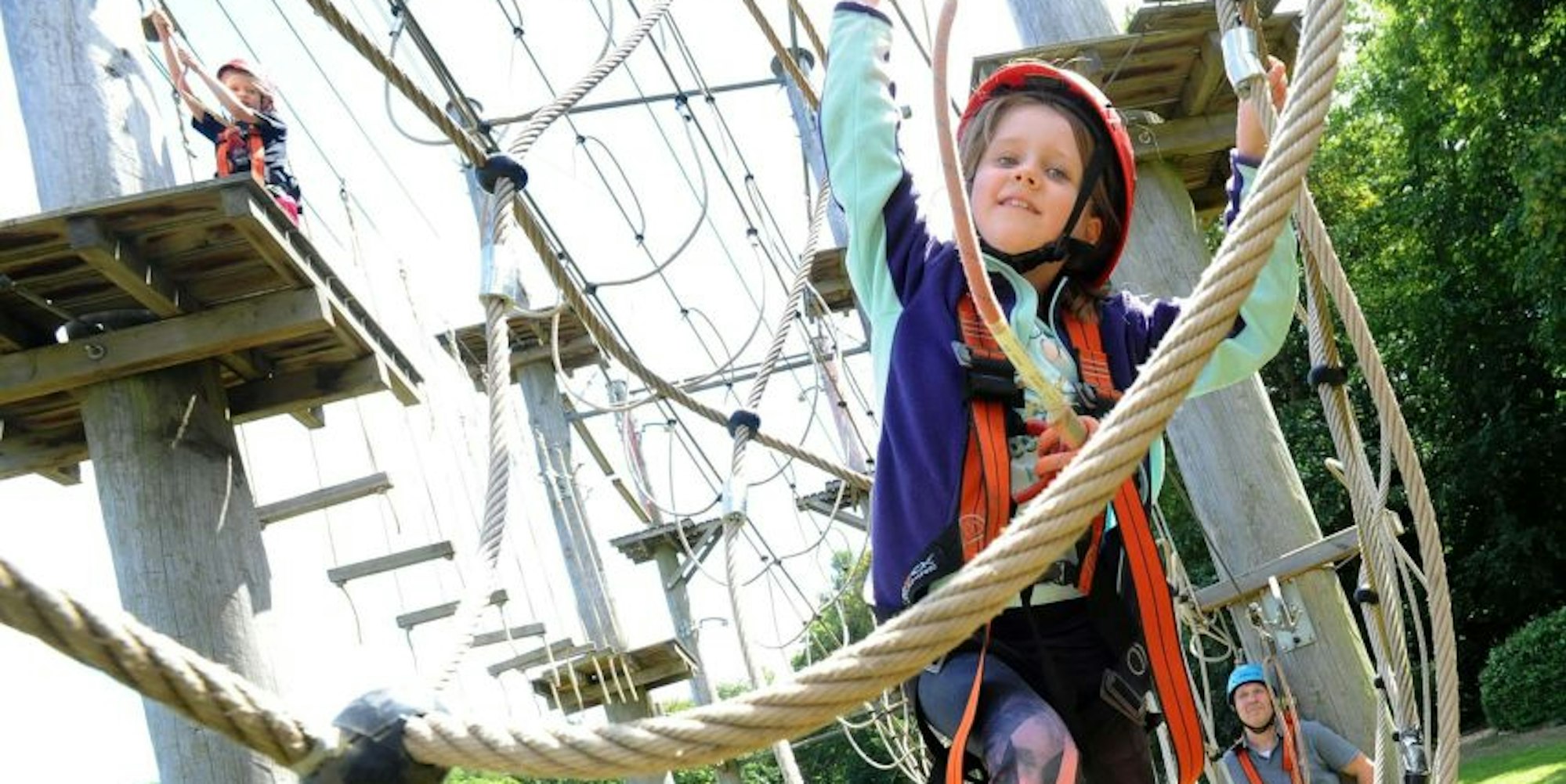 Mutig in den Seilen des wieder geöffneten Klettergarten Birkenberg: Fenja Genna Gude, 7 Jahre alt.