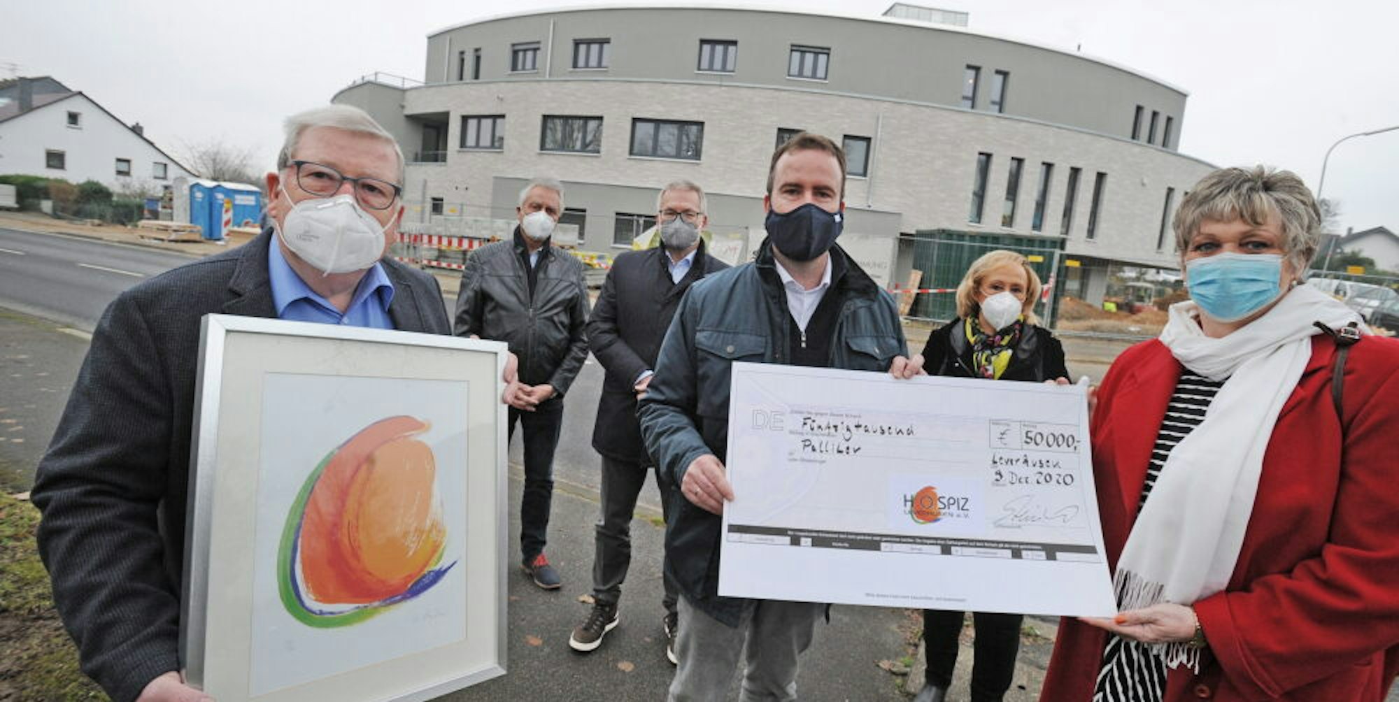 Leverkusen – Es ist die größte Einzelspende in der Geschichte von Leverkusens erstem stationären Hospiz Pallilev – und sie hat eine lange Vorgeschichte. Seit 23 Jahren gibt es den Verein „Hospiz Leverkusen“, der ambulante Sterbebegleitung anbietet. „Es war von Anfang an unser Anliegen, stationäre Hospizbetten in Leverkusen zu bekommen“, erklärt Nicole Steinfeld, stellvertretende Vorsitzende des Hospizvereins. „Ursprünglich sollten das in einem Altenheim entstehen, das hat aber leider nicht geklappt – oder heute würde ich sagen: Zum Glück nicht.“ Denn so konnte die Spendengelder, die mehr als 20 Jahre auf einem speziellen Konto für eben diesen Zweck gesammelt wurden, nun an das Pallilev übergeben werden: 50 000 Euro.