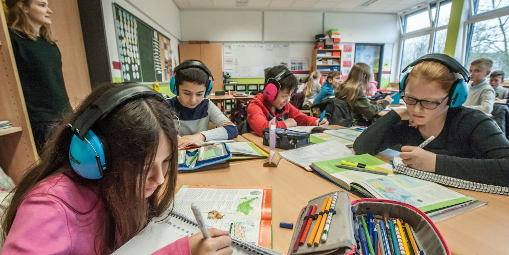 Lernen mit Kopfhörern: In einer Leverkusener Schule ist das jetzt Alltag.