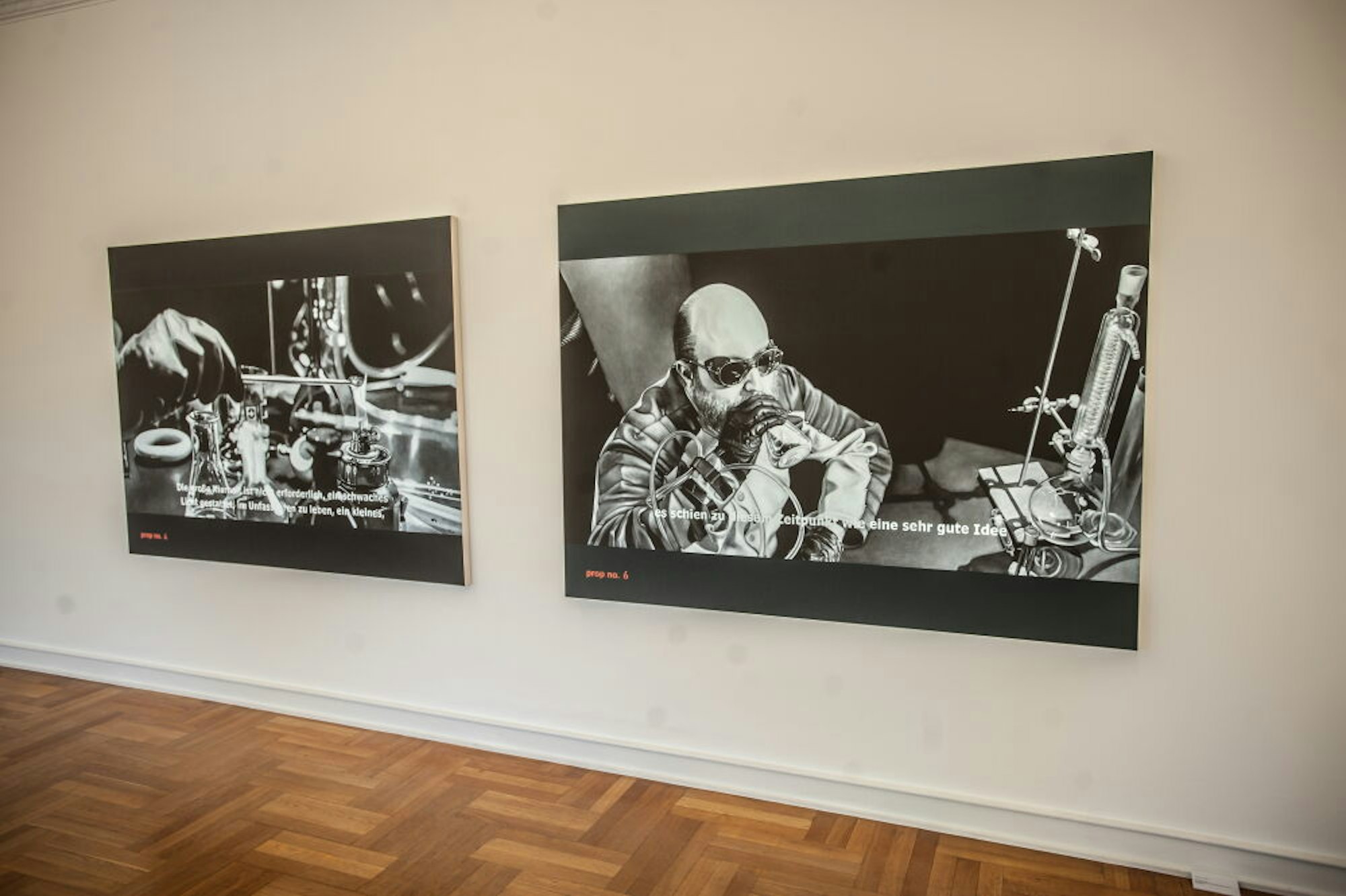 Es ist am Ende vor allem die sich über mehrere Museumszimmer im ersten Stock des Hauses erstreckende Performance, Installation und überhaupt Zusammenkunft zahlreicher Spielarten der bildenden Kunst von Matthias Wollgast, die diese Ausstellung rettet und einen Besuch zweifelsohne lohnend macht:Wollgast baute mit rotem Teppich, Fotowand, Theke, Popcornmaschine, abgedunkeltem Saal und Leinwand die Illusion eines Kinos auf, in dem die Premiere eines Filmes namens „The Steps With No Name“ gezeigt wird.