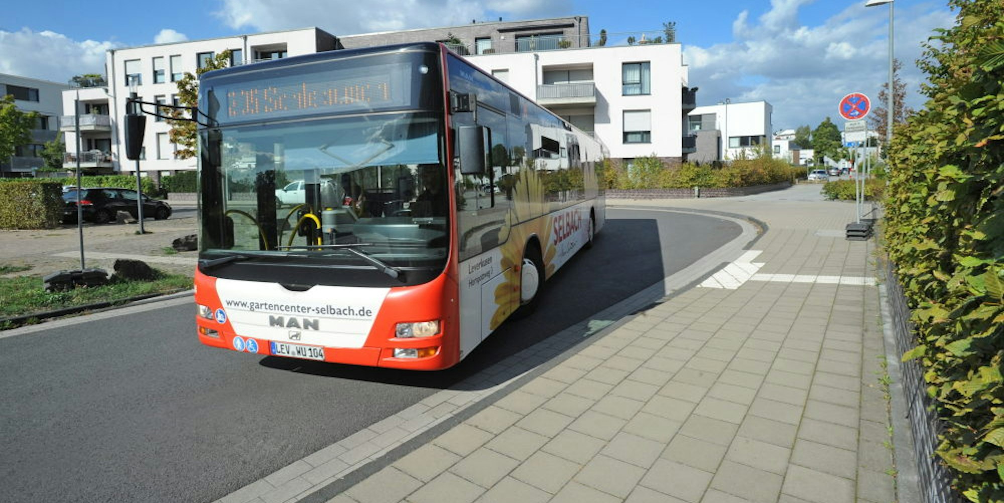 Leverkusen – Lange Zeit konnten die Anwohner am östlichen Ende der Bahnstadtchaussee, in der kurvigen Umfahrung des Parkplatzes am Funkenturm, am Straßenrand parken. Doch seit dem Fahrplanwechsel am 28. August fährt jetzt die Buslinie 205 durch die Bahnstadt. Und auf Bestreben der Wupsi hin gilt seitdem an dieser Stelle eines absolutes Halteverbot, damit die Gelenkbusse, die in beide Fahrtrichtungen im 20-Minuten-Takt durchfahren, ungehindert um die Kurve kommen.