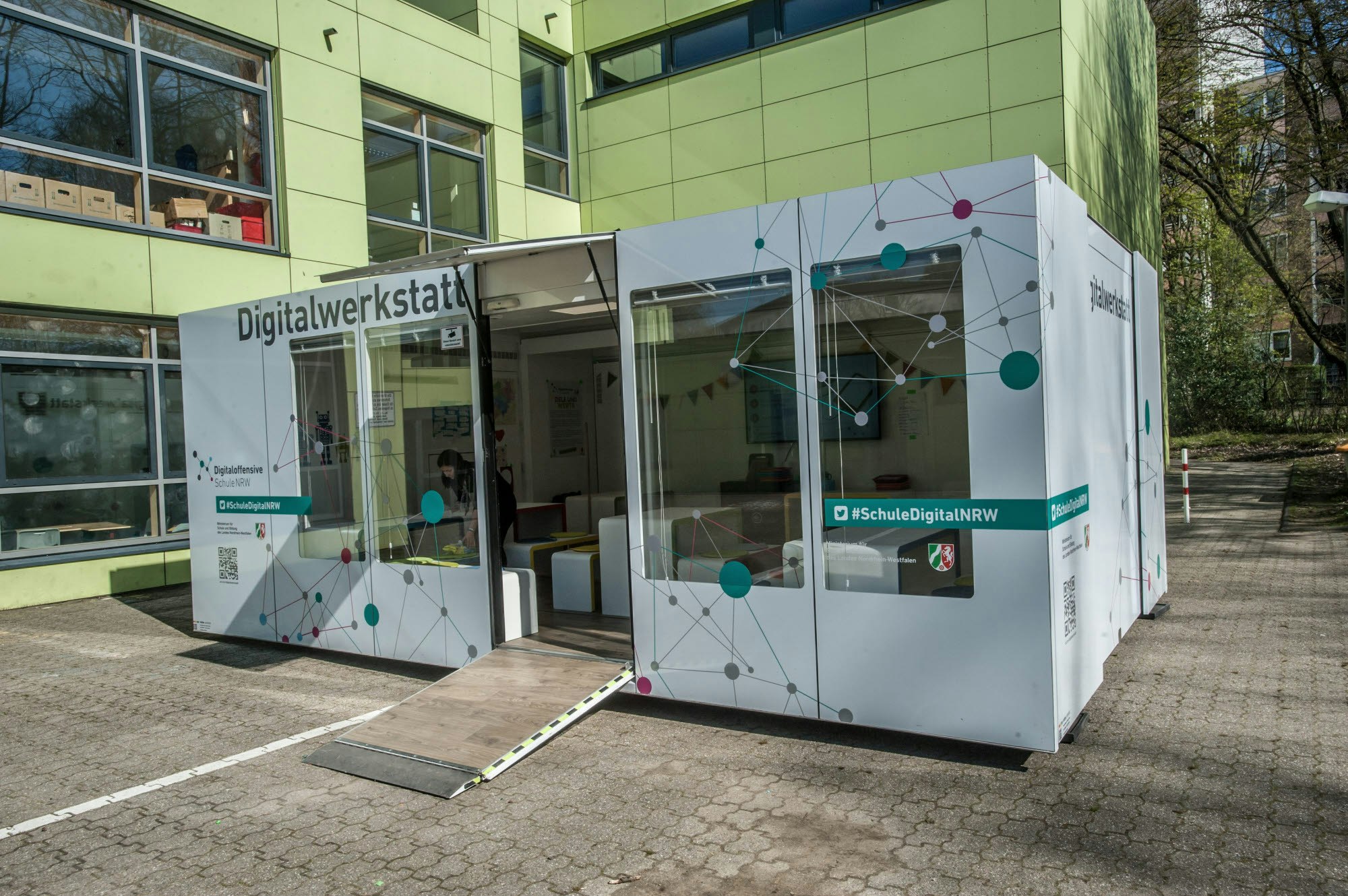 Zwölf Meter ist der Truck lang, der durch ganz NRW reist und Schülern für eine Woche in das digitale Klassenzimmer einlädt. Spielerisch soll ihnen so der Unterricht in der digitalisierten Welt näher gebracht werden. „Wir wollen versuchen, die Kinder aus der Konsumentenrolle heraus zu holen und dazu anzuleiten die digitalen Geräte mehr kreativ und produktiv zu nutzen“, erklärte Monika Pieper, Referentin für Digitalisierung im NRW-Schulministerium.