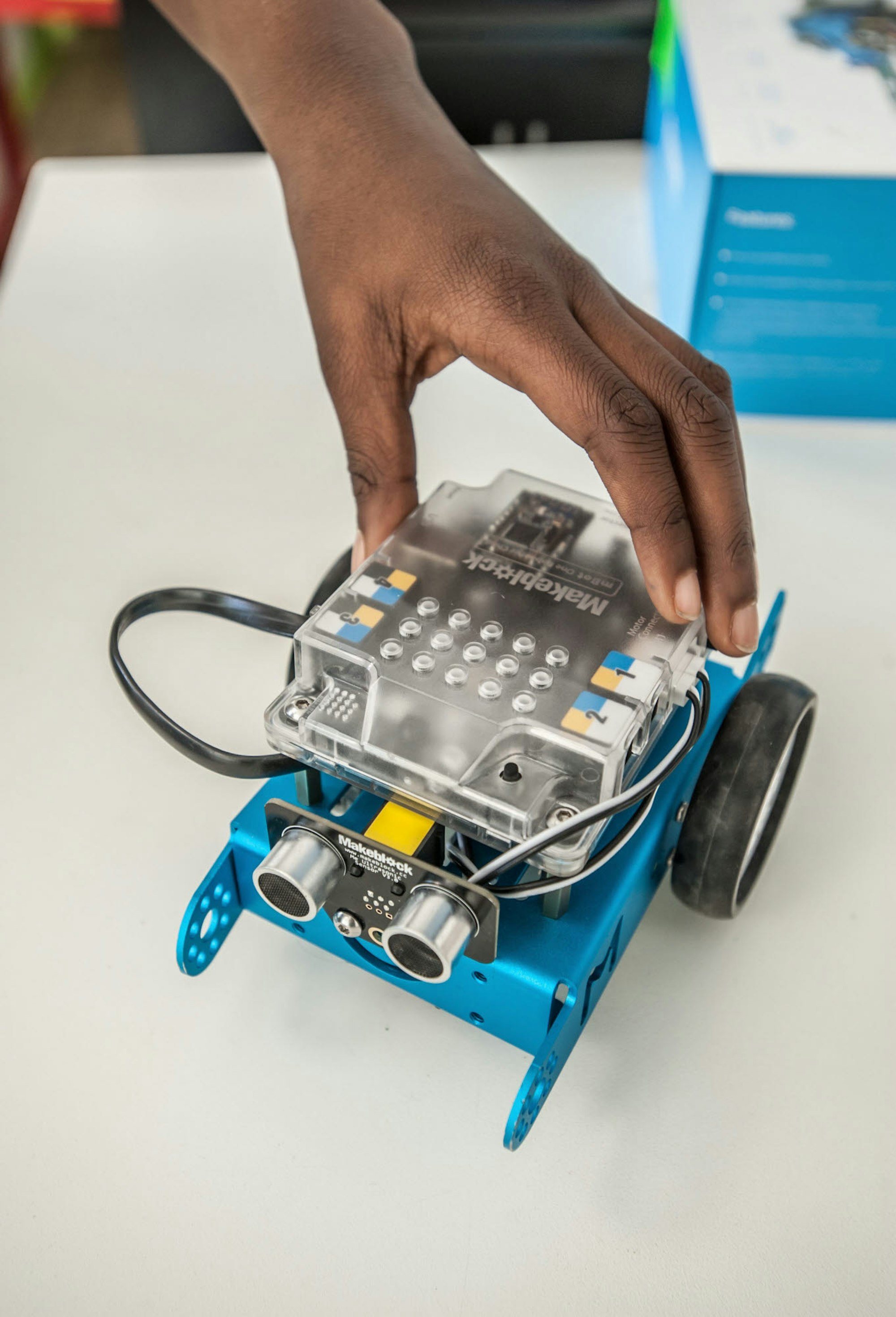Leverkusen – Stolz steht die zehnjährige Jannat auf der Bühne der Gemeinschaftsgrundschule Heinrich-Lübke-Straße und präsentiert ihren Roboter. „Wir haben programmiert, dass er genau das macht, was wir wollen“, erklärt sie. Ihr Roboter hat sogar einen Namen, er heißt Jesi. Kippt Jannat ihr Tablet nach vorne, fährt Jesi vorwärts. Neigt sie ihr Tablet nach hinten, fährt er zurück. Das Programmieren von Robotern war Teil der mobilen Digitalwerkstatt, einem Unterrichts-Programm vom Land NRW.