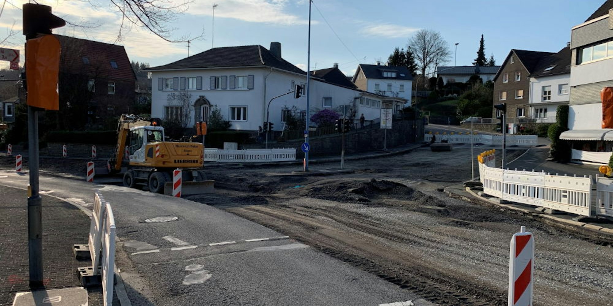Marienheide – Seit Montag wird im Marienheider Ortszentrum wieder gebaut. Der zweite Abschnitt der großangelegten Straßensanierung im Bereich der Einmündungen Kleinbahnweg und Scharder Straße sollte nach ursprünglicher Planung bereits im Februar angegangen werden. Doch die allzu nasse Witterung machte dem Baustellenmanagement einen Strich durch diese Rechnung. Nun endlich wurde die nördliche Seite der Leppestraße aufgerissen – und gleich mehrere Baustellenampeln im Ort installiert.