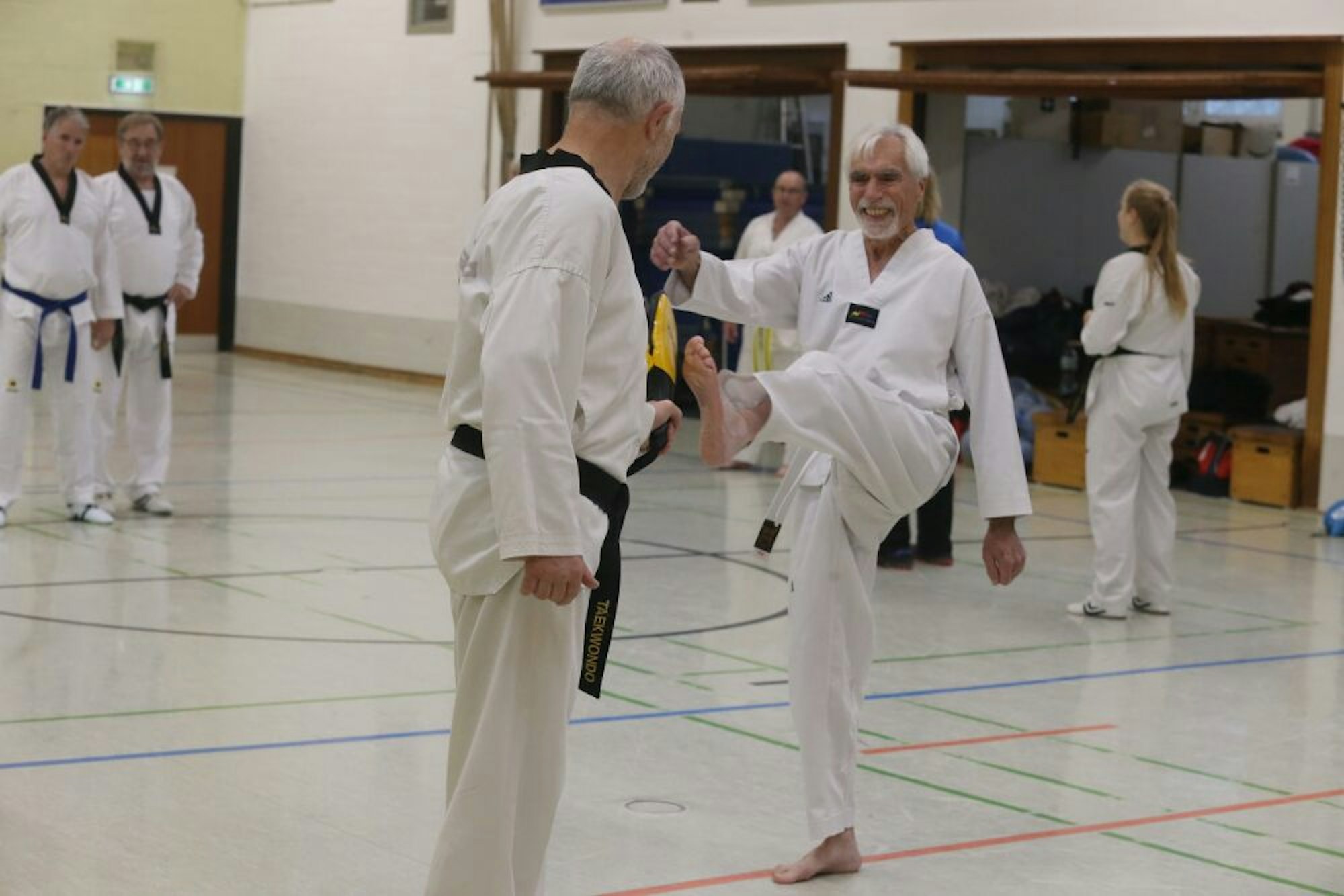 Der Nachmittag habe ihre Erwartungen erfüllt. „Das ganzheitliche Training ist eine Möglichkeit, fit alt zu werden. Ich fände es toll, wenn aus diesem Nachmittag ein Angebot werden würde.“ Taekwondo schule nicht nur den Körper, sondern auch den Geist, nennt Bransch (64) als Vorteil der Kampfsportart, die auf den ersten Blick so gar nicht geeignet für Menschen in der zweiten Lebenshälfte scheint. „Das Training verbessert die Mobilität und die Dehnfähigkeit“, sagt Bransch. Für den Geist kämen die Eigenschaften des Budo, unter dem Kampfsportarten wie Karate oder Taekwondo zusammengefasst sind, dazu.