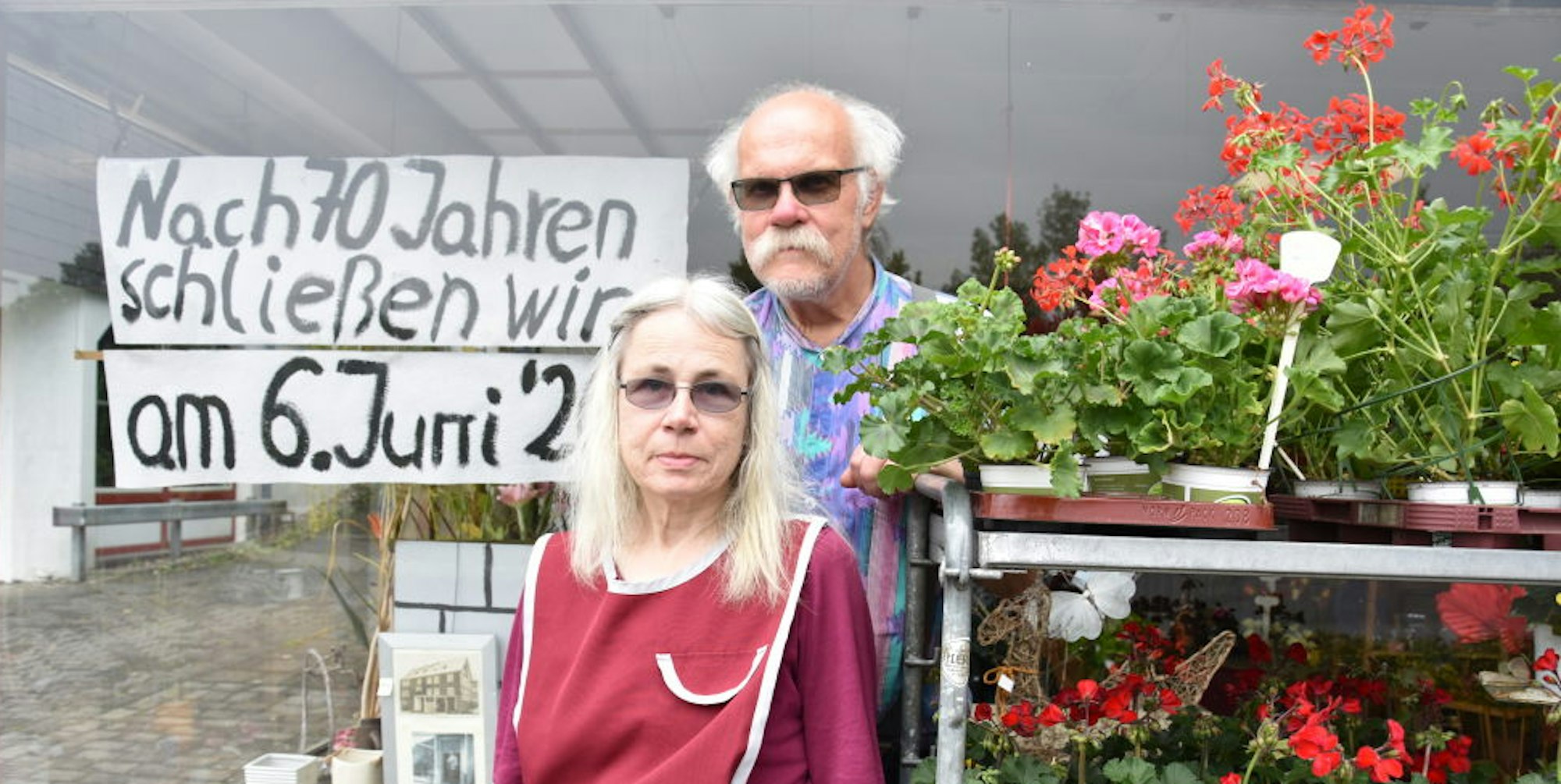Geranien zum Abschied: Renate und Harald Schuler konnten keines ihrer Kinder davon überzeugen, das Geschäft weiterzuführen.