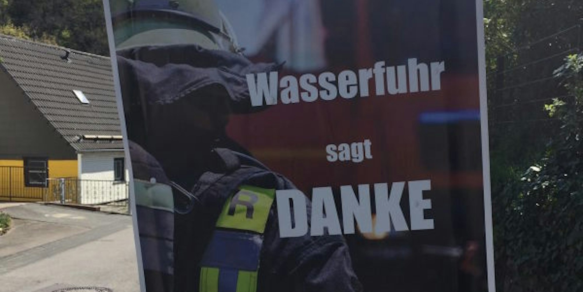 Schon während der Löscharbeiten auf dem Hömerich bedankten sich die Wasserfuhrer Bürger mit diesen Plakaten bei den Einsatzkräften aus der ganzen Region.