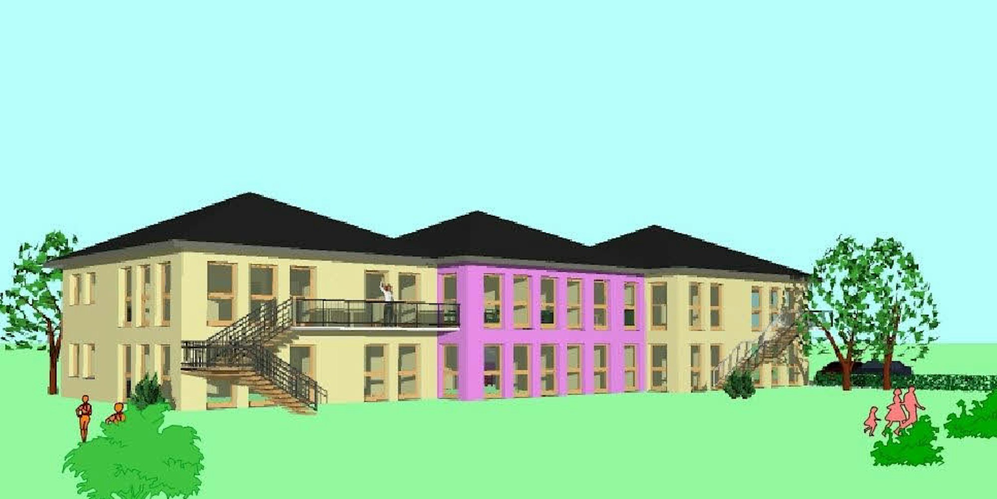 Über die Farbe der Fassade ist noch nicht entschieden, aber der VfsD-Kindergarten wird zweigeschossig sein und gut 730 Quadratmeter Nutzfläche haben.