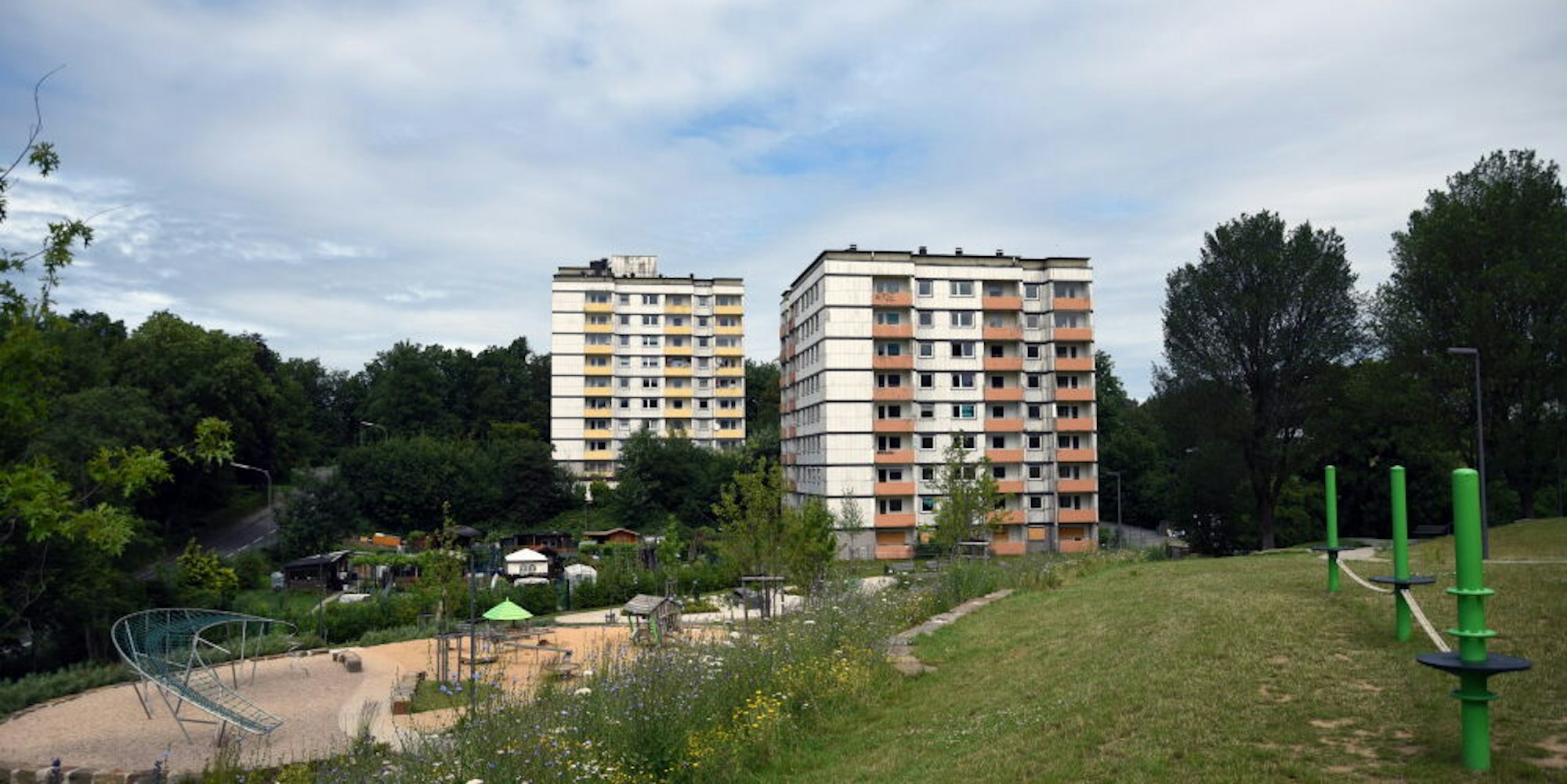 „Weniger Wohnungen und mehr Lebensqualität“ ist Teil des Stadtentwicklungskonzepts Hackenberg, für dessen Umsetzung seit 2013 rund 30 Millionen Euro zumeist aus Fördermitteln aufgewandt werden. Das „Grüne Band“ entlang des Leienbachs quer durch den Stadtteil gehört ebenso zu den bereits durchgeführten Veränderungen wie der Bau des Hackenbergparks oder die Umgestaltung des Parkplatzes an der Breslauer Straße zu einem Bürgertreffpunkt.