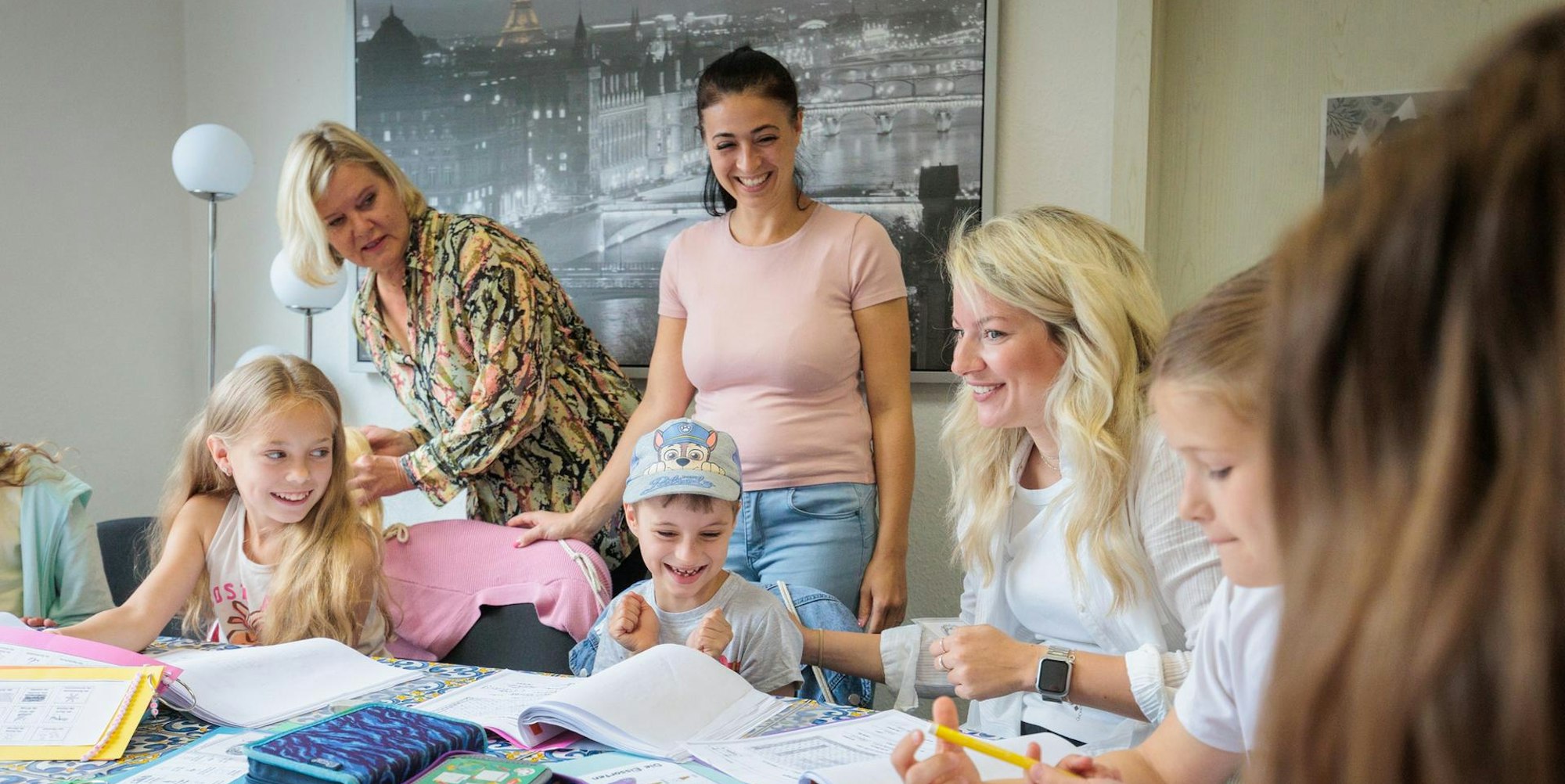 „Spielend Deutsch lernen“ heißt das gebührenfreie Sommerferien-Programm, das von der Wipperfürther Hans-Hermann-Voss-Stiftung gefördert wird. Nach dem Vokabeltraining am Vormittag geht es raus zum Wildpark, in die Eisdiele oder einfach in den Wald, um die neuen Wörter praktisch auszuprobieren. Zwischendurch decken alle Kinder gemeinsam den Tisch für das Mittagessen und lernen dabei, was „Teller“ und „Nudeln“ bedeutet.