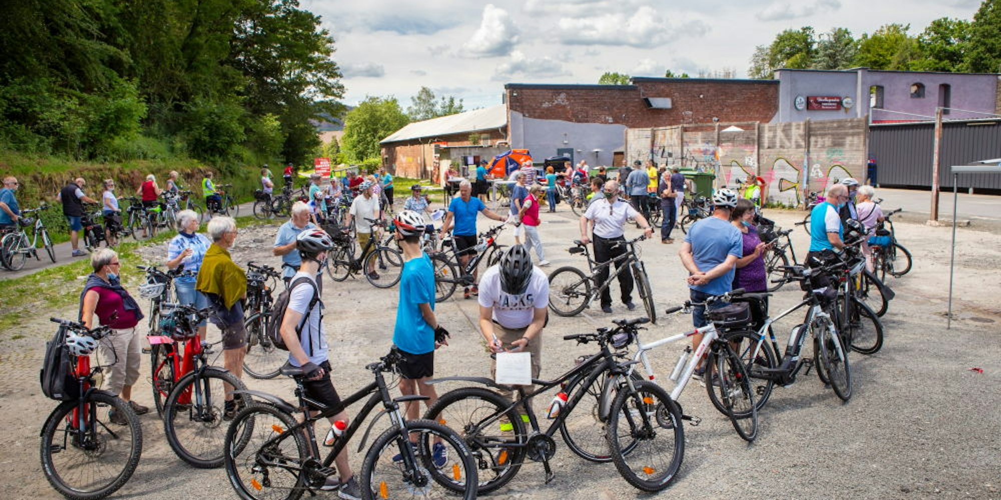 Zahlreiche Radler auf der umgebauten Bahntrasse schauten neugierig auf den Menschenauflauf. So auch Hartmut Hoßmann aus Bergneustadt. Glücklicherweise hatte er den Kaufbeleg für sein E-Bike in der Tasche und so entschloss er sich spontan, sein Fahrrad zusätzlich zum Schloss mit einem Code zu sichern.