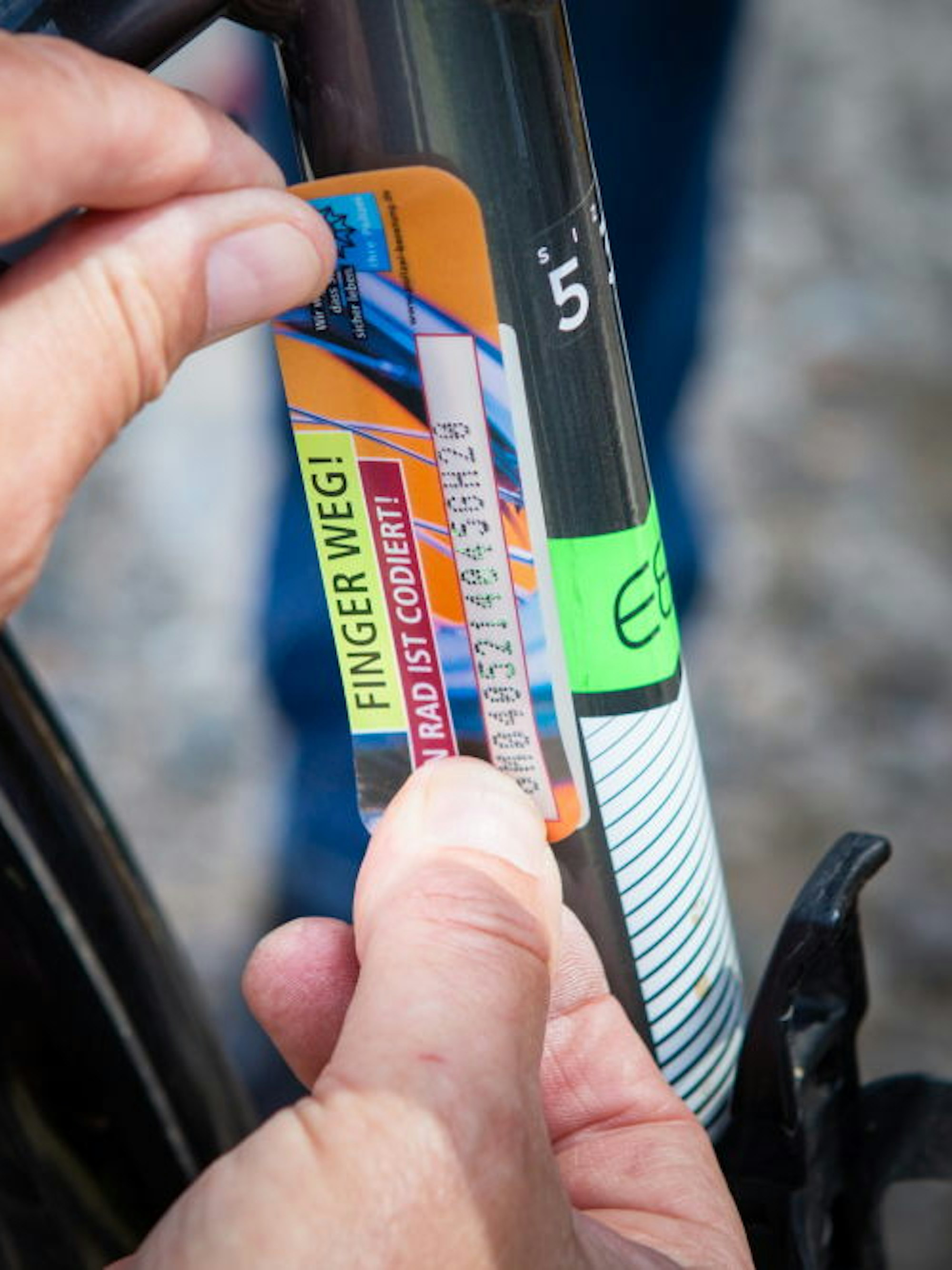 Im Vorjahr habe der ADFC rund 14.000 Fahrräder in Deutschland codiert. Das sei allerdings nur ein verschwindend geringer Teil angesichts von mehr als vier Millionen verkaufter Räder, knapp ein Drittel davon E-Bikes. Für Gerd Hilchenbach aus Wiedenest war die Fahrradcodierung bislang kein Thema gewesen. Doch nachdem er von der Aktion gehört hatte, sei er mit seiner Frau kurzerhand hierhergekommen. Nach dem Entfetten des Rahmens klebte Werheid einen „Silberling“ auf das Sitzrohr unterhalb des Sattels und übertrug mit einem Nadelpräger den Code auf den Rahmen. „Abreißen nützt nichts“, meinte er. „Die Nummer ist jetzt in das Metall geprägt.“