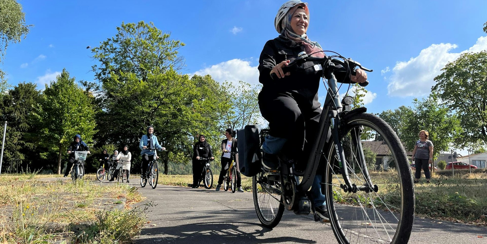 Mit rund 15 Frauen trifft sie sich nun bereits den dritten Samstag in Folge zu einem Fahrradkurs, initiiert von Arzu Durmus und Basak Yilmaz von FFF „Fahrrad Frau Freiheit“. Gemeinsam mit Manuela Bergmann, Gleichstellungsbeauftragte der Stadt Bergneustadt, Friederun Schmilinsky vom ADFC Oberberg Mitte und Fahrradtrainerin Alfa Dinar motivieren sie die Frauen, die zum größten Teil vorher nicht Fahrrad fahren konnten.