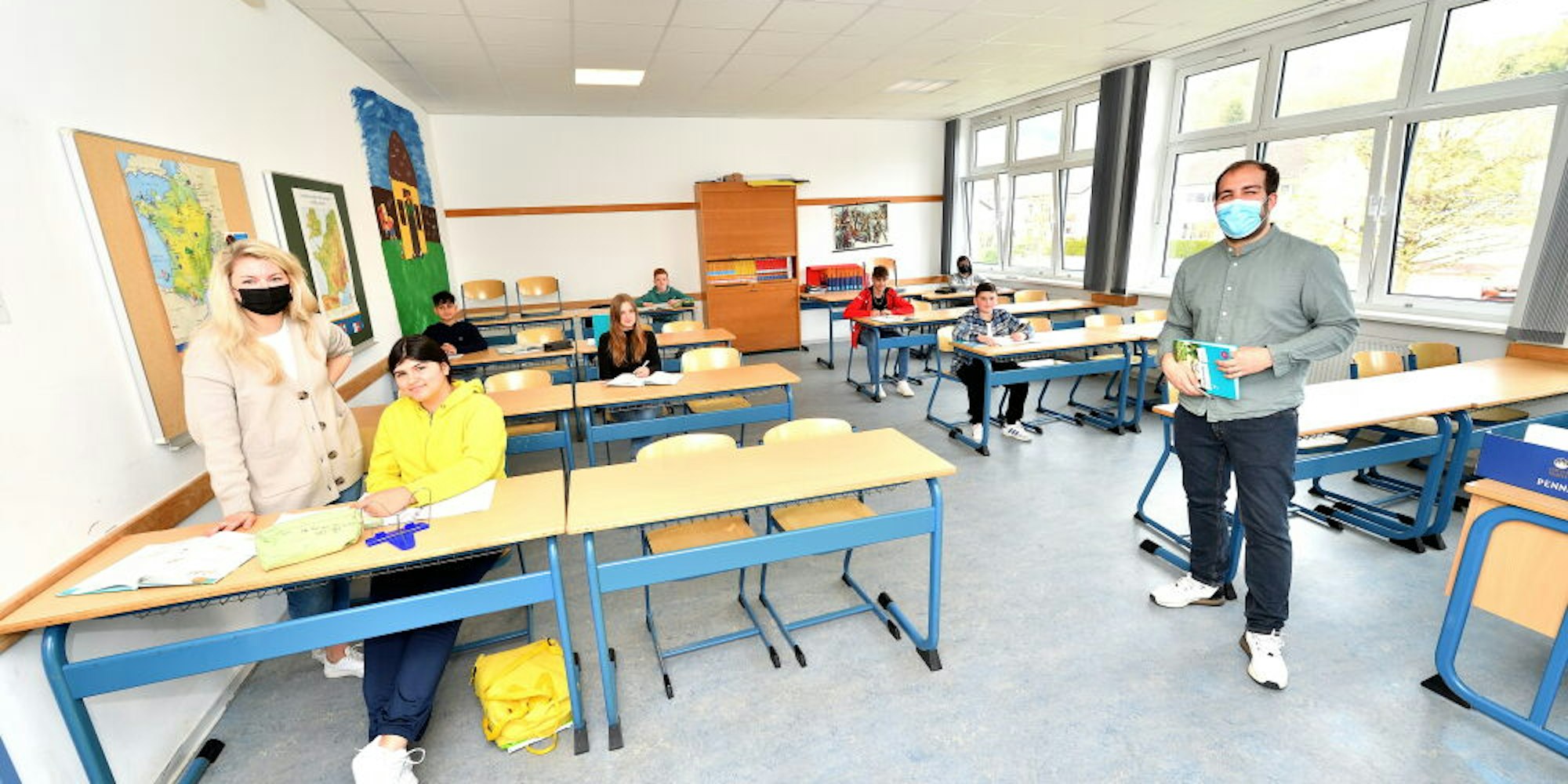 Bergneustadt – Anstatt morgens auszuschlafen und in den Osterferien die Seele baumeln zu lassen, sind sie freiwillig in ihre Schule zurück gekehrt und haben lieber mit Prozentualrechnung beschäftigt. Sena (12) und Fabian (13) sowie 22 weitere Mitschüler der siebten Jahrgangsstufe an der Realschule Bergneustadt wollen sich mit Hilfe der Ferienschule unter dem Motto „Aufholen nach Corona“ im Fach Mathematik verbessern und drücken freiwillig die Schulbank.