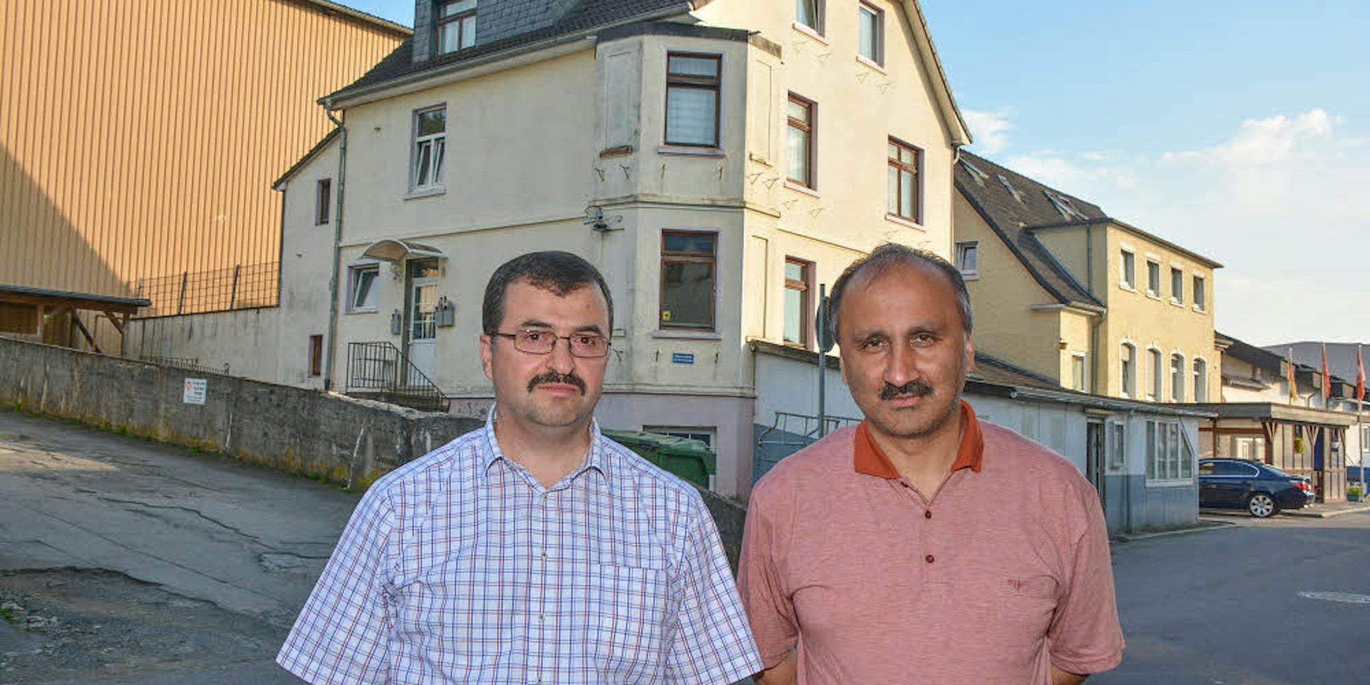 Versuchen weiter, in Bergneustadt eine Moschee zu bauen: Vereinsvorstand Abdullah Ulay (l.) und Vorstandsmitglied Erdogan Caylak, hier 2017 vor dem heutigen Vereinsgelände.