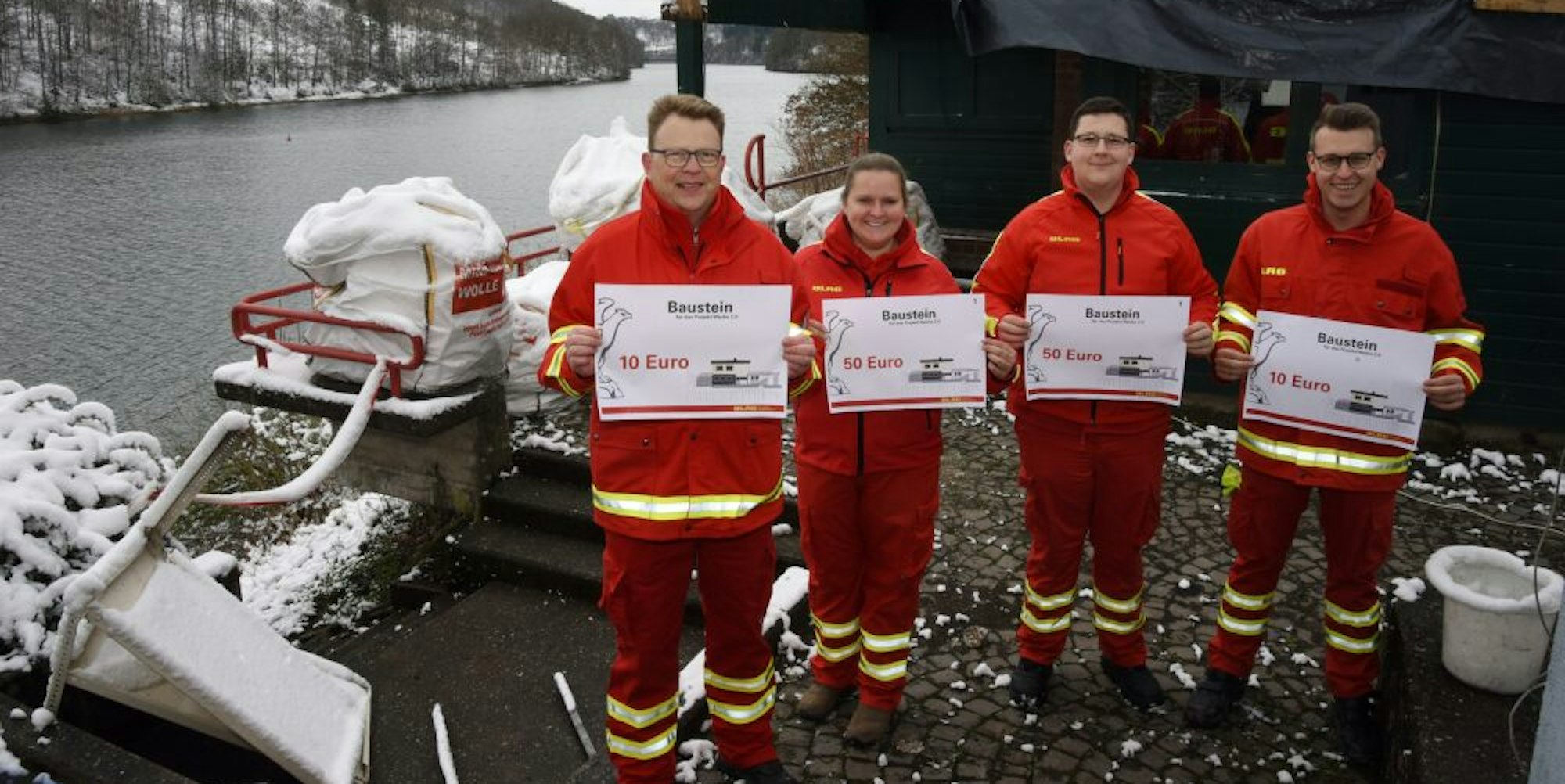 Den Kopf in den Sand stecken möchte die Ortsgruppe jedoch noch nicht. Sie hat nun einen Bausteinverkauf ins Leben gerufen. Wer die Sanierung der Wasserrettungsstation an der Aggertalsperre unterstützen möchte, kann eine Bausteinurkunde zu einem selbst festgelegten Geldbetrag erwerben. Der Erwerb kommt einer Spende gleich, für die jeder Unterstützer eine Urkunde erhält, auf der sich auch eine Losnummer befindet.