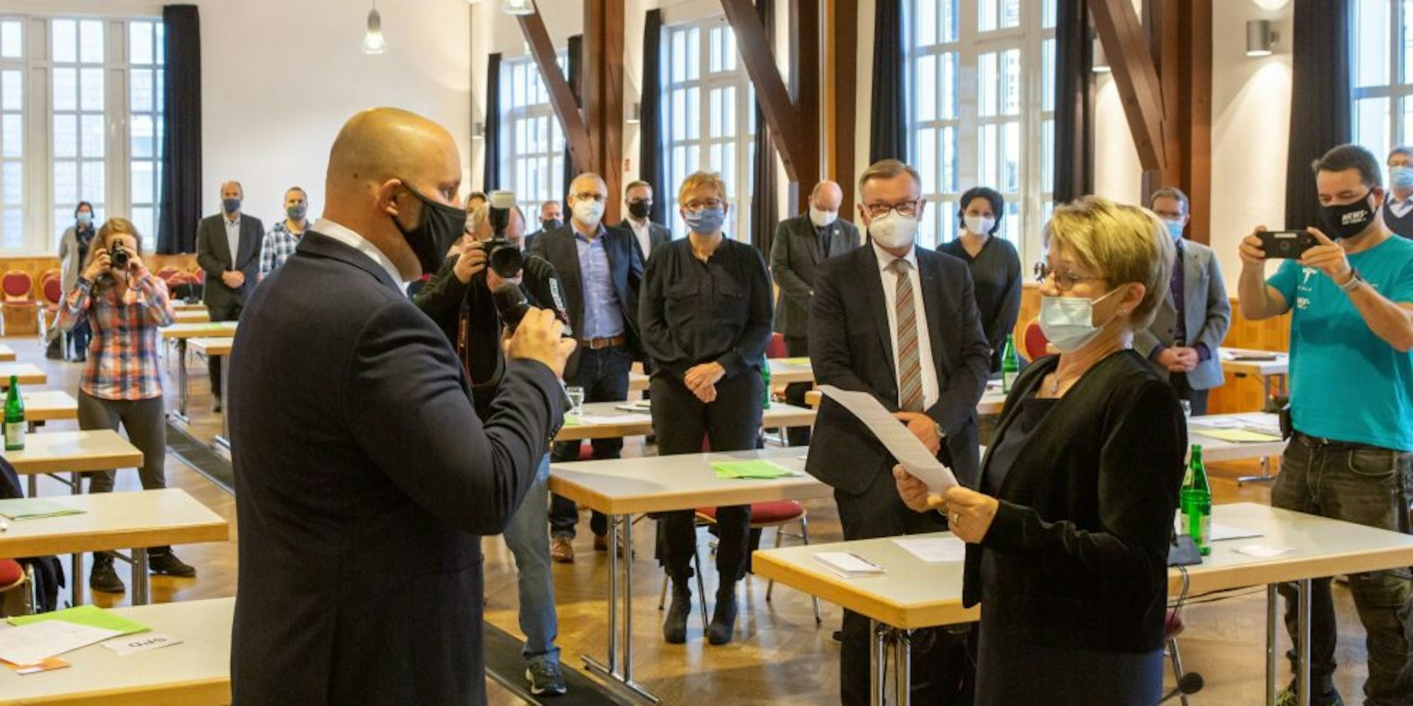 Bergneustadt – Die Vereidigung des neuen Bürgermeisters Matthias Thul, die Wahl seiner Stellvertreter, die Verpflichtung der 34 neuen Stadtratsmitglieder, die Bildung der Ausschüsse samt Benennung ihrer Vorsitzenden – der Bergneustädter Rat hatte in seiner konstituierenden Sitzung viele Formalien zu erledigen. Alle Entscheidungen fielen einmütig, die alte und neue erste Vize-Bürgermeisterin hatte nach Thuls Vereidigung ihre Kollegen bereits zu mehr Gemeinsamkeit aufgerufen.