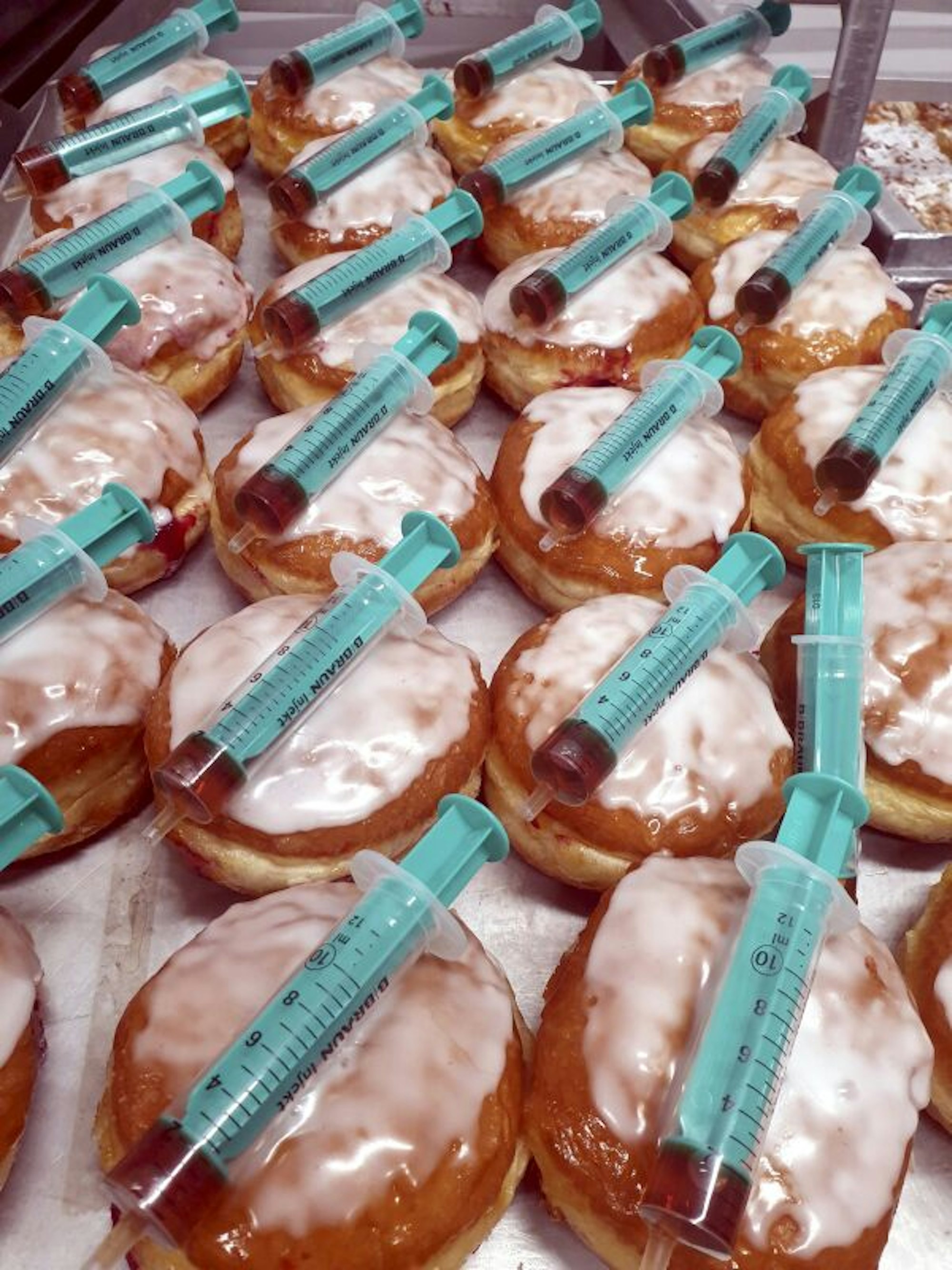 Eine weitere Besonderheit dieses Jahr ist die „jecke Impfung“. Das ist ein Berliner mit Kirschkonfitüre, der mit einer amarettogefüllten Spritze kommt, „um den Berliner mit der Alkoholfüllung zu ,impfen’“, erklärt Gießelmann mit einem Lächeln. So bringt selbst ein traditionelles Karnevalsgebäck die aktuellen Begebenheiten raffiniert und kreativ auf den Punkt.