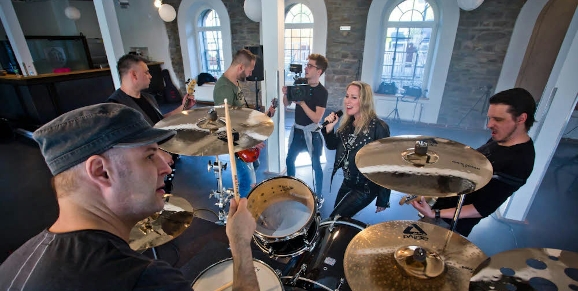 Freakstorm sind Sinah Meier, Oliver Fuchs, Marc Bremer, Toby Wendeler und Dirk Weidmann. Hinten filmt Jannik Gramm.